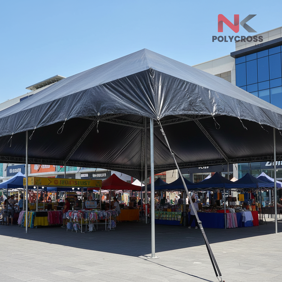 ผ้าใบคลุมแผงขายของในศูนย์การค้า ป้องกันพายุ ป้องกันเชื้อราและเห็ดทินทูต ผ้าใบคลุมศูนย์การค้า