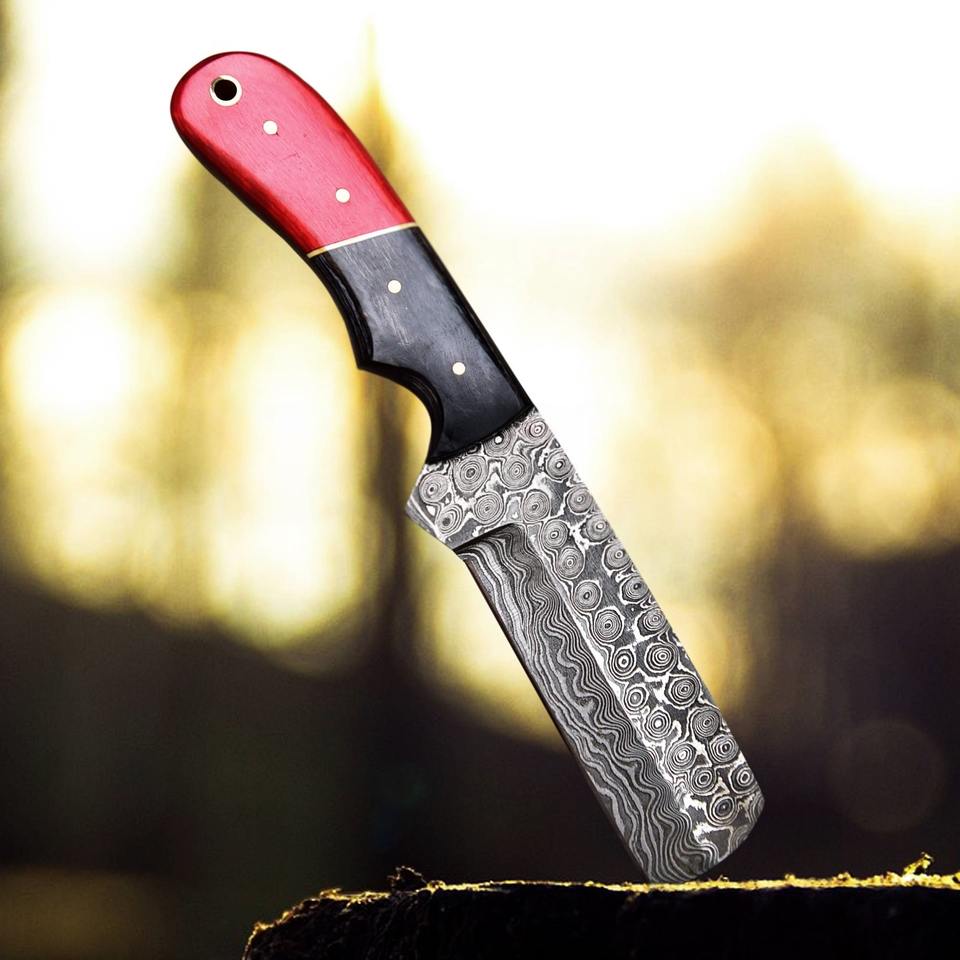 มีดคาวบอยเหล็กดามัสกัสทรงตรง ด้ามกระดูกอูฐ ลายหยดน้ำ สำหรับล่าสัตว์ ตั้งแคมป์ แบบ OEM/ODM