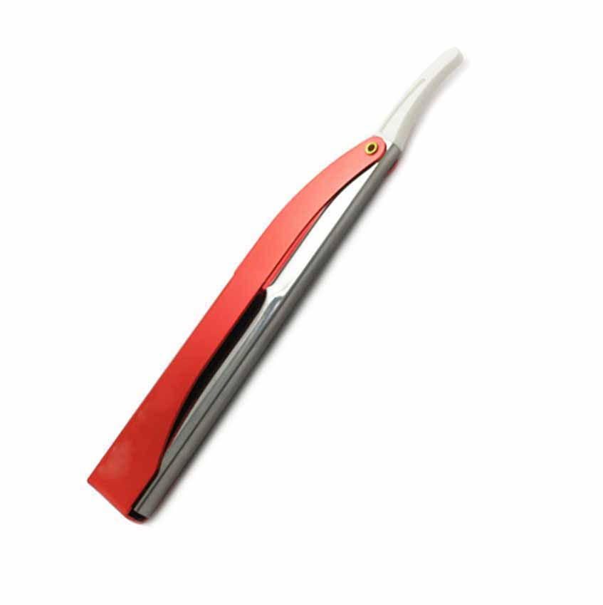 มีดโกนแบบเปียกสำหรับร้านตัดผมตรงพร้อมใบมีดเคลือบทองคำขาวเครื่องโกนหนวดแบบพับได้อเนกประสงค์สำหรับร้านทำผม