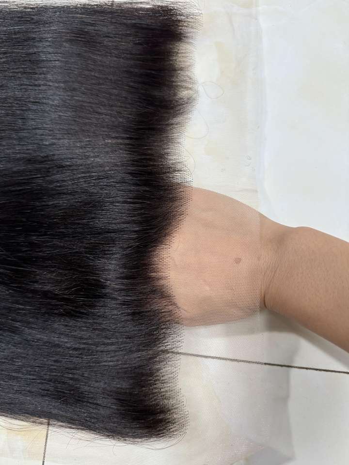 วิกผมแท้เวียดนามเกรดเรมี่สีดำตรง ไฮไลท์สีดำ แบบผูกเชือกด้านหน้า ไม่หลุดร่วง ไม่พันกัน