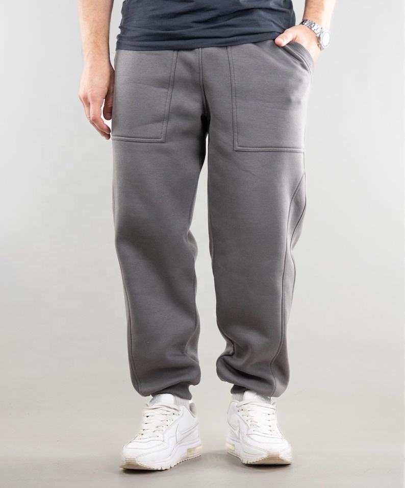 กางเกงวอร์มขาตรงคุณภาพสูงสไตล์เรโทรผ้าฟอกสำหรับผู้ชาย เอวยางยืด รับผลิตแบบ OEM ยูนิเซ็กซ์ ผ้าฝ้าย 100% สวมใส่สบาย ระบายอากาศได้ดี ทรงหลวม