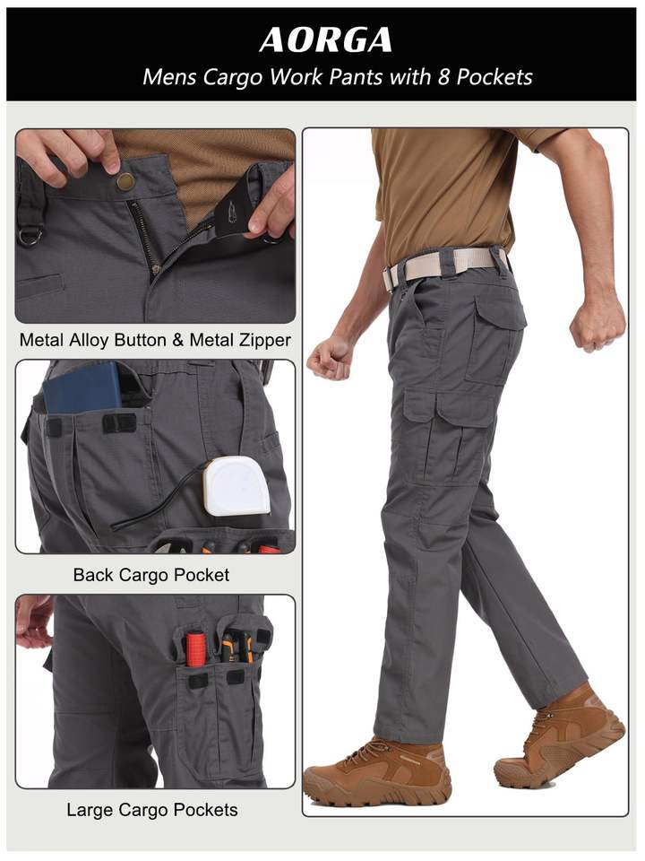 กางเกงขายาวทรงตรงและกางเกงคาร์โก้สำหรับผู้ชาย กางเกงเดินป่าลำลองผู้ชาย มีกระเป๋าหลายช่อง เสื้อผ้าเดินป่ากลางแจ้งขนาดใหญ่ กางเกงไซส์ใหญ่สำหรับผู้ชาย เสื้อผ้าสำหรับใส่ออกนอกบ้าน