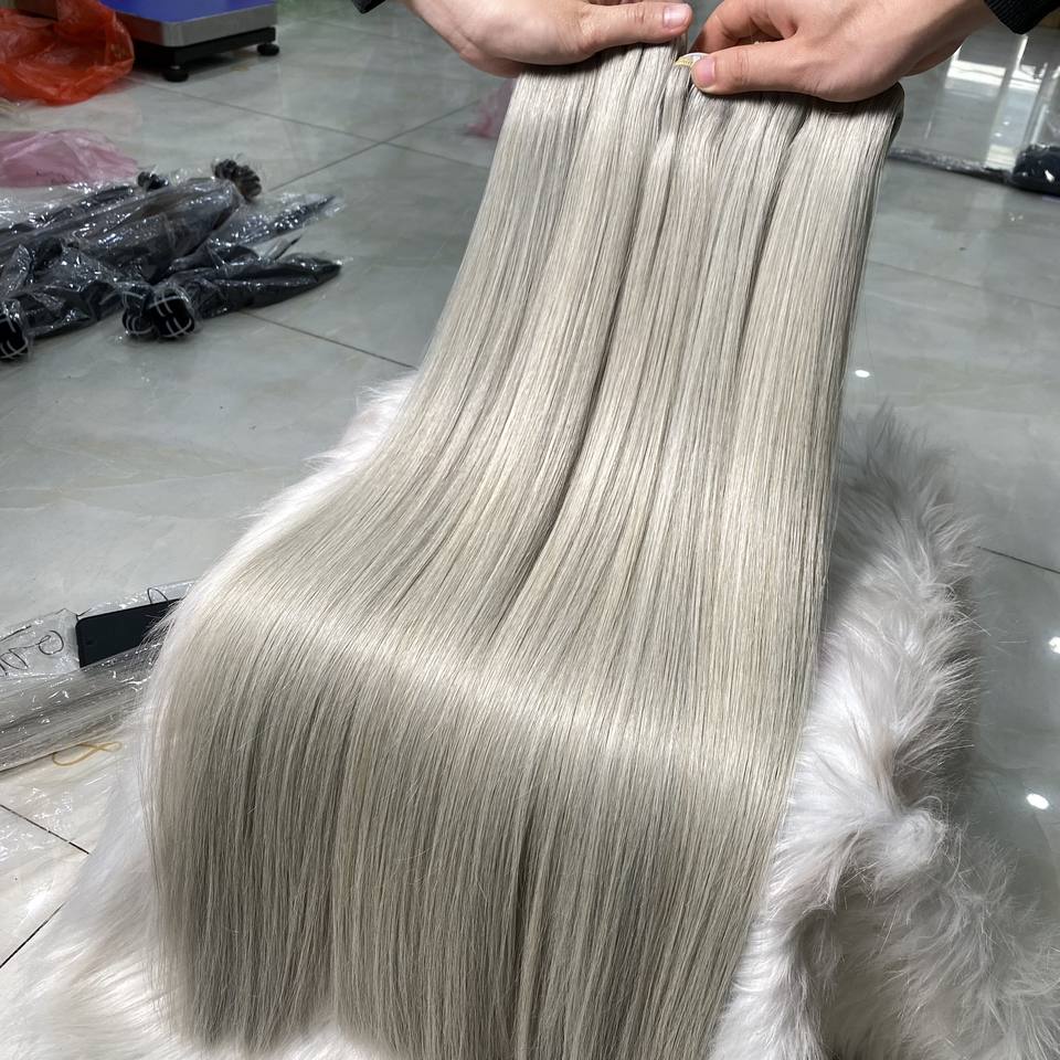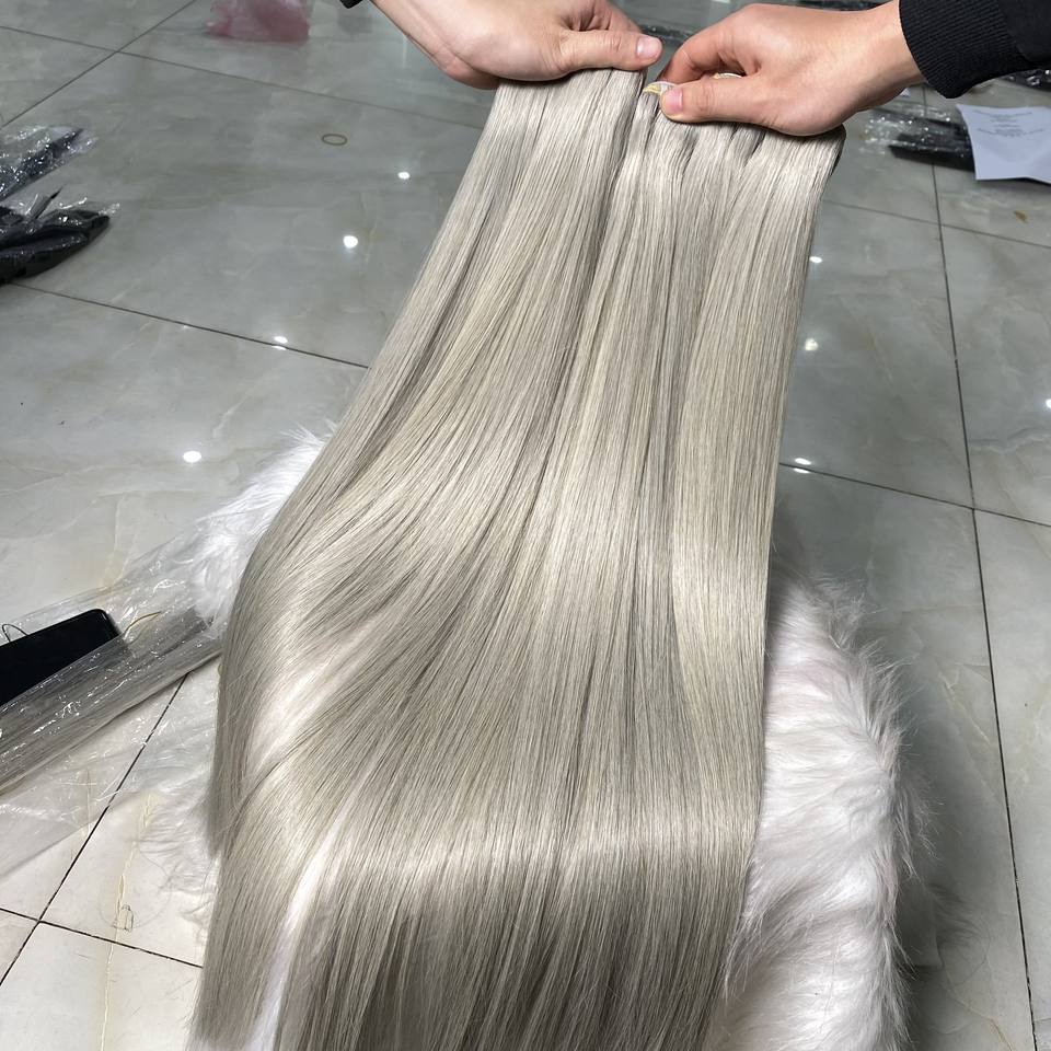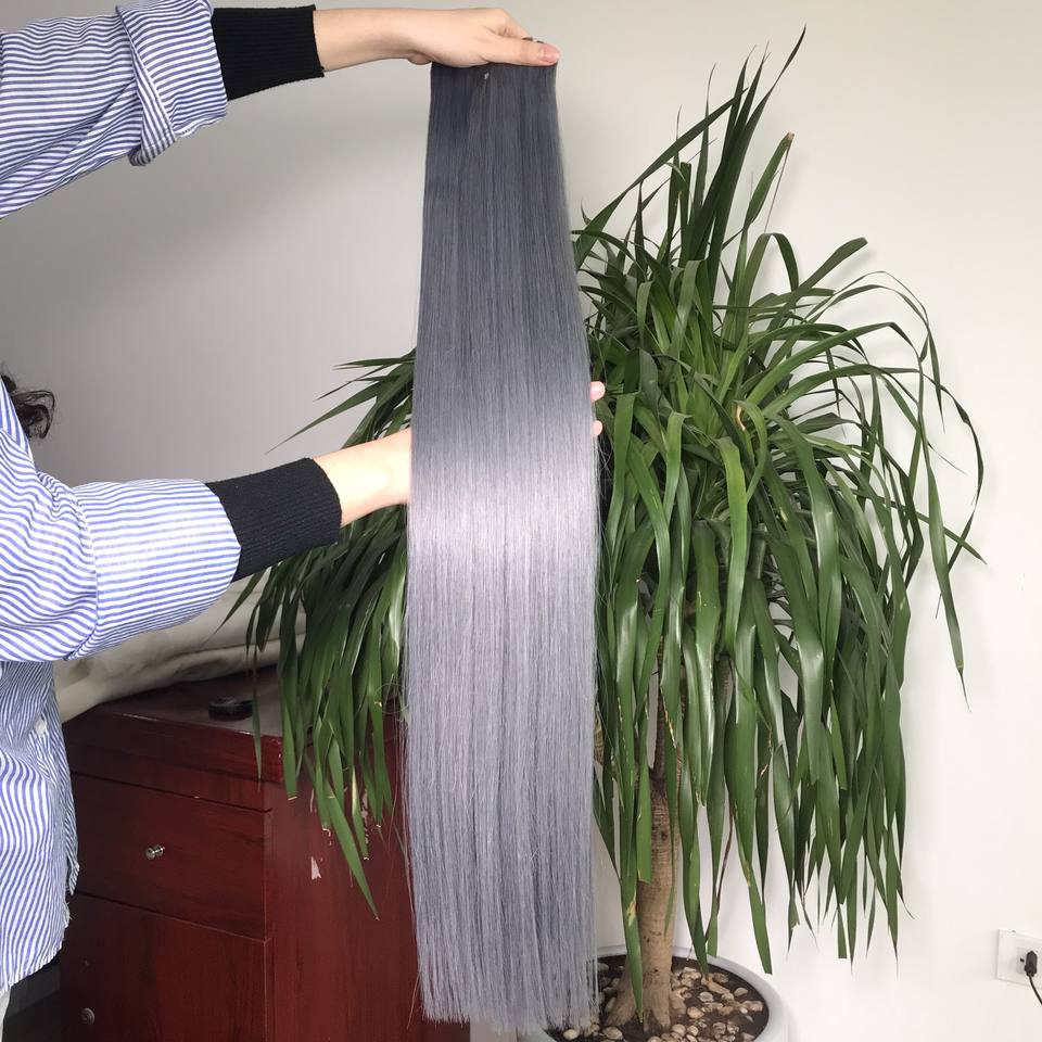 วิกผมมนุษย์แบบตรงสไตล์เวียดนามวิกผมแท้สีเทาความละเอียดสูง