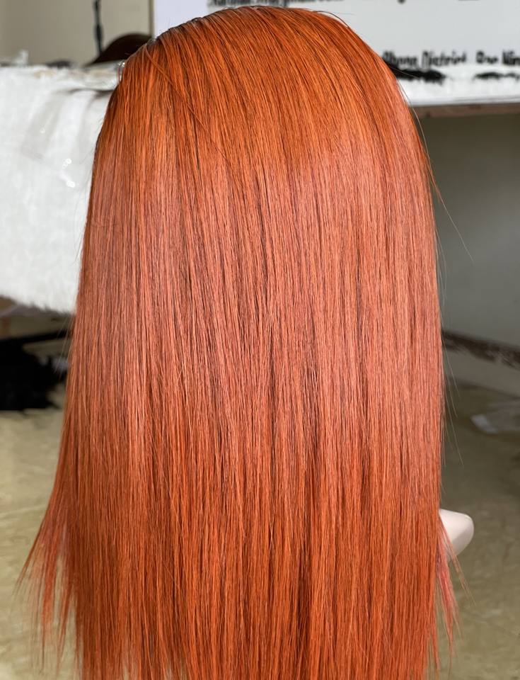 วิกผมแท้แบบตรงสำหรับผู้หญิงผมคนเวียดนามสีส้มลูกไม้ใส