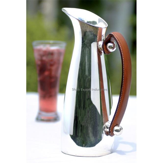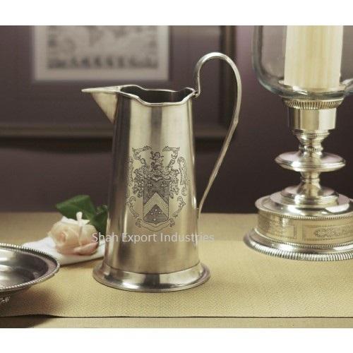 เหยือกน้ำแบบตรงพร้อมอุปกรณ์สำหรับเครื่องดื่มสแตนเลสสตีลที่ใช้ในบ้านและโรงแรมเหยือกน้ำสีเงิน