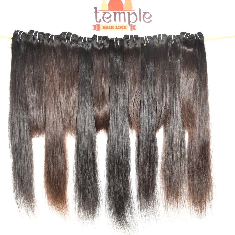ผมต่อแบบตรง ชนิดอินเดียนเรมี่ สีดำธรรมชาติ สำหรับผู้หญิง แบบเย็บสองชั้น ลอนลึก ผลิตโดยผู้ผลิตผมต่อแบบเต็มศีรษะ