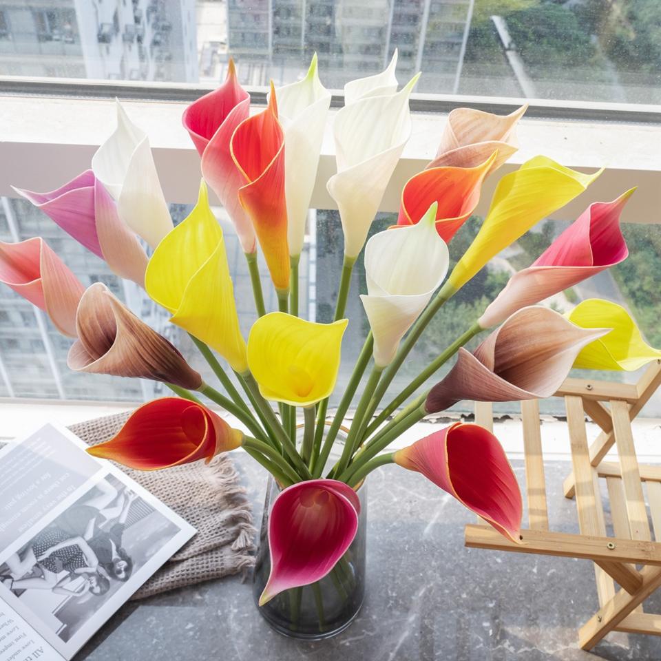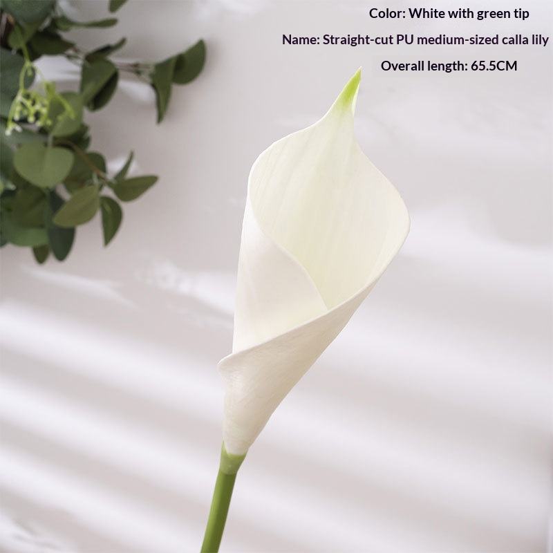 ดอกคาลล่าลิลลี่ปลอมแบบตรง ดอกไม้ประดิษฐ์สีเขียว ผู้ผลิตดอกไม้ปลอม ขายส่ง ของตกแต่งงานแต่งงาน