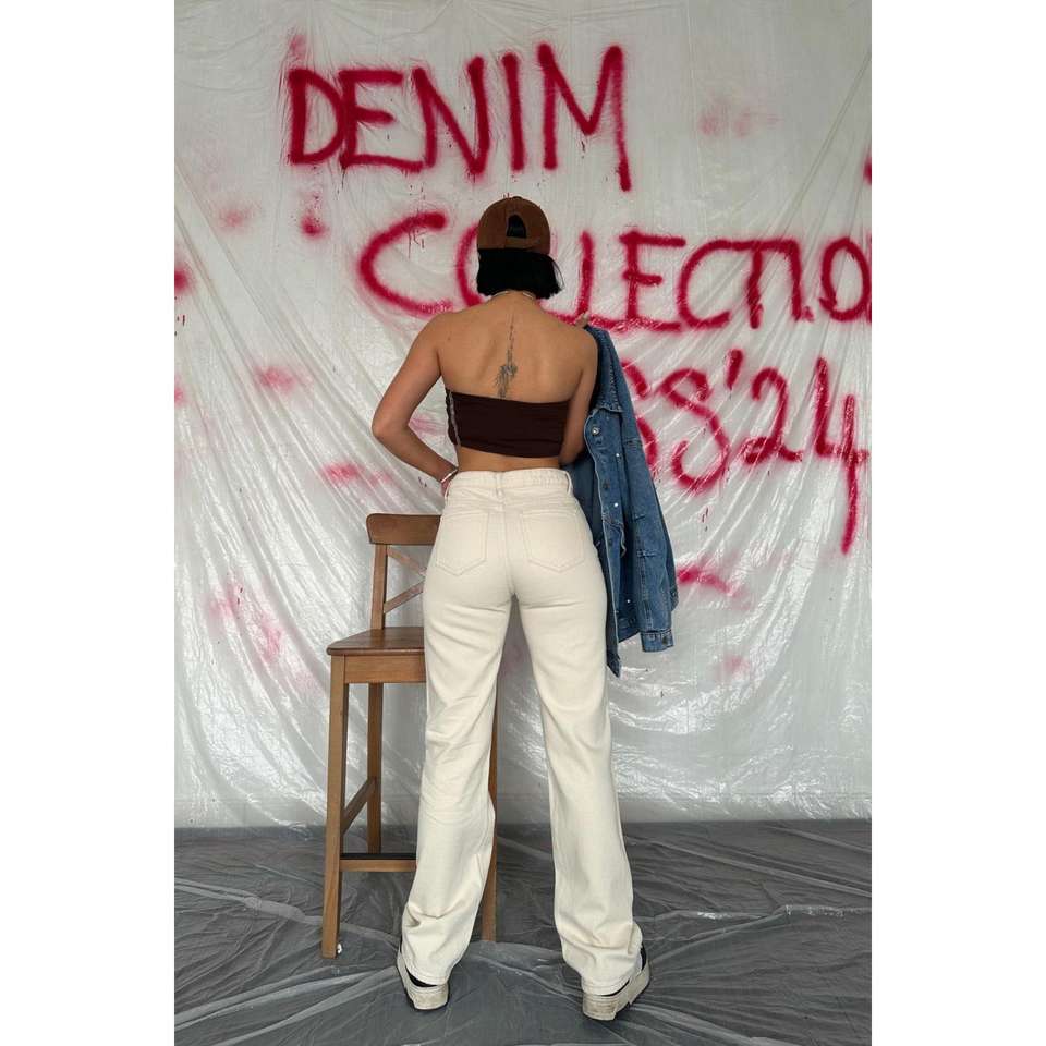 กางเกงยีนส์ทรงตรงเอวสูงสีเบจสำหรับผู้หญิง รุ่น Straightmaniac ซักได้ สไตล์เรียบง่าย คอลเลคชั่น SS24