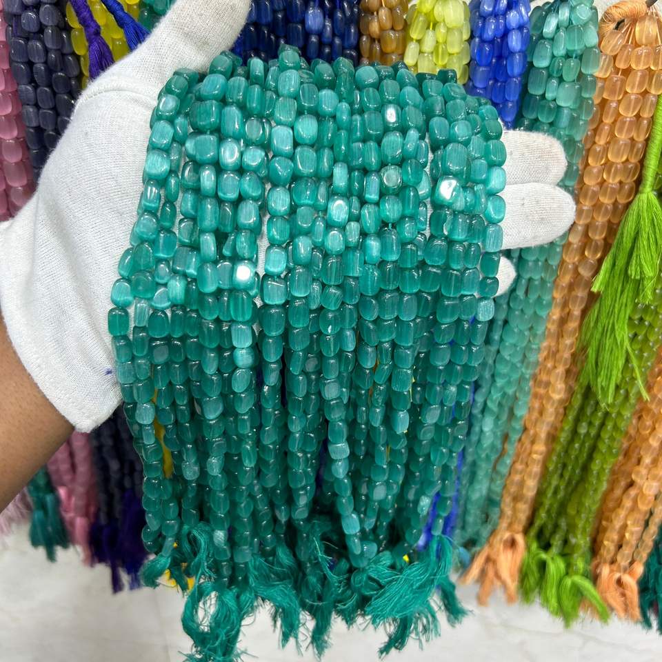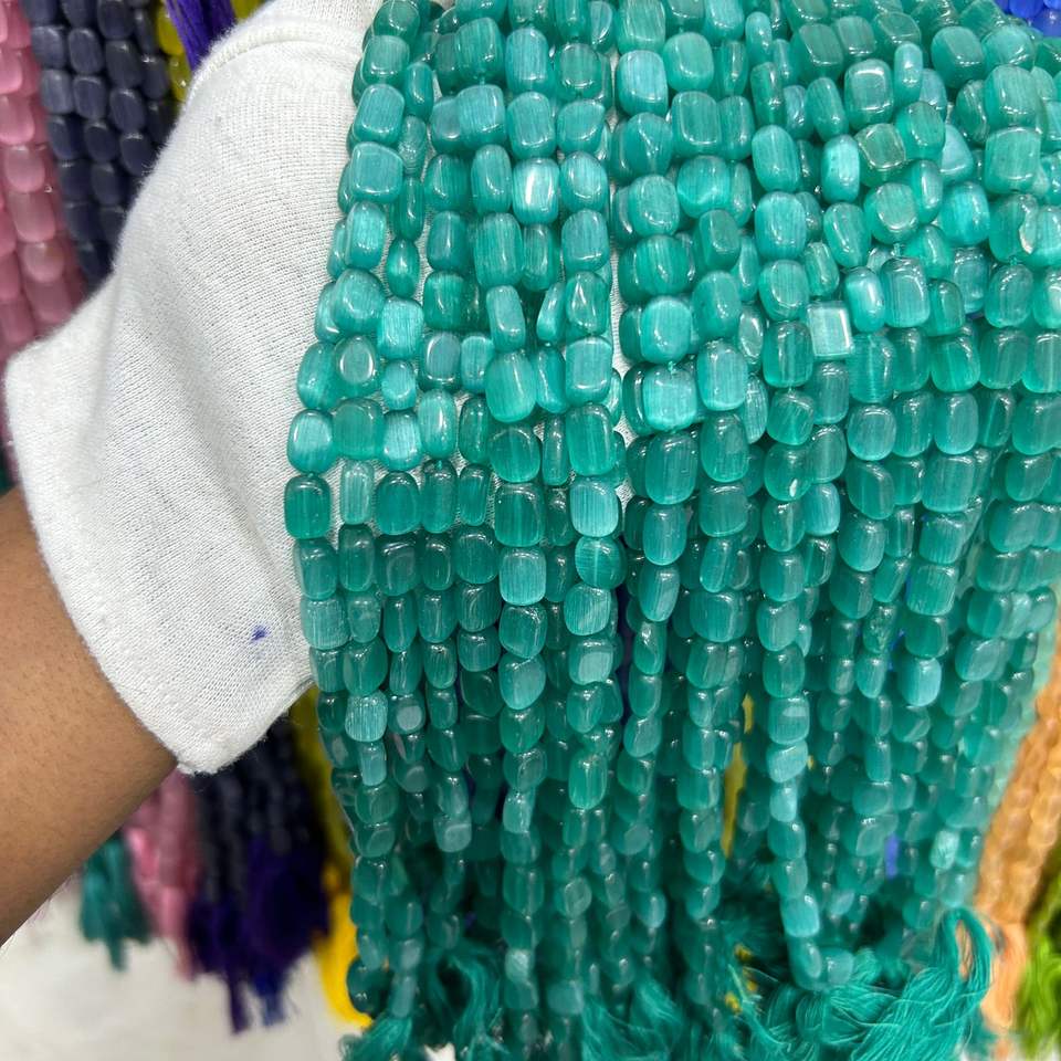 ลูกปัดพลอยทรงนูเก็ตเรียบ สีเขียวโมนาลิซ่า สำหรับทำเครื่องประดับและงานฝีมือ