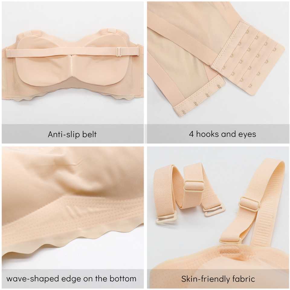 บราไร้สายแบบซ่อนรูป บราผู้หญิงเซ็กซี่แบบไม่มีโครง บราแบบเกาะอกเสริมฟองน้ำครึ่งคัพ ระบายอากาศได้ดี ไซส์ XXL/XXXL แบบดันทรง