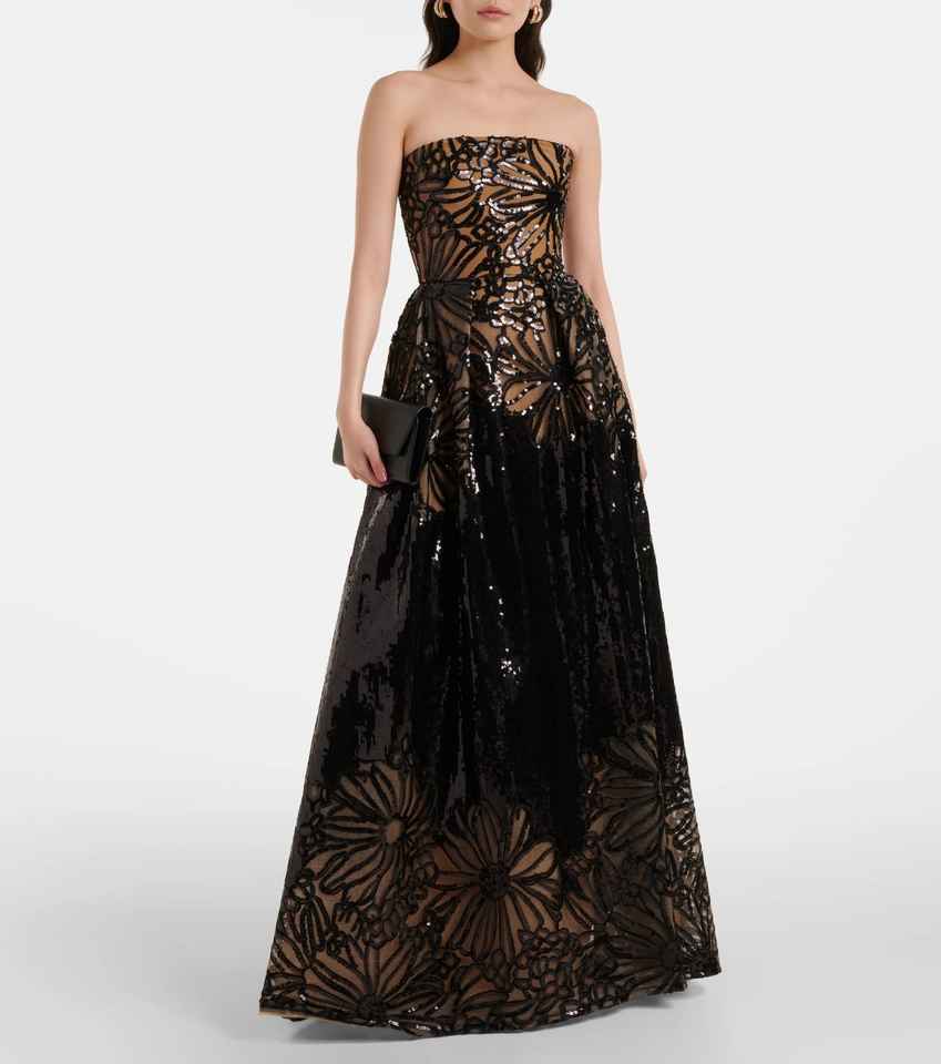 ชุดเดรสเกาะอก2025หรูหราทรงเอไลน์สำหรับผู้หญิงชุดเดรสจีบวงกลมสำหรับงานปาร์ตี้