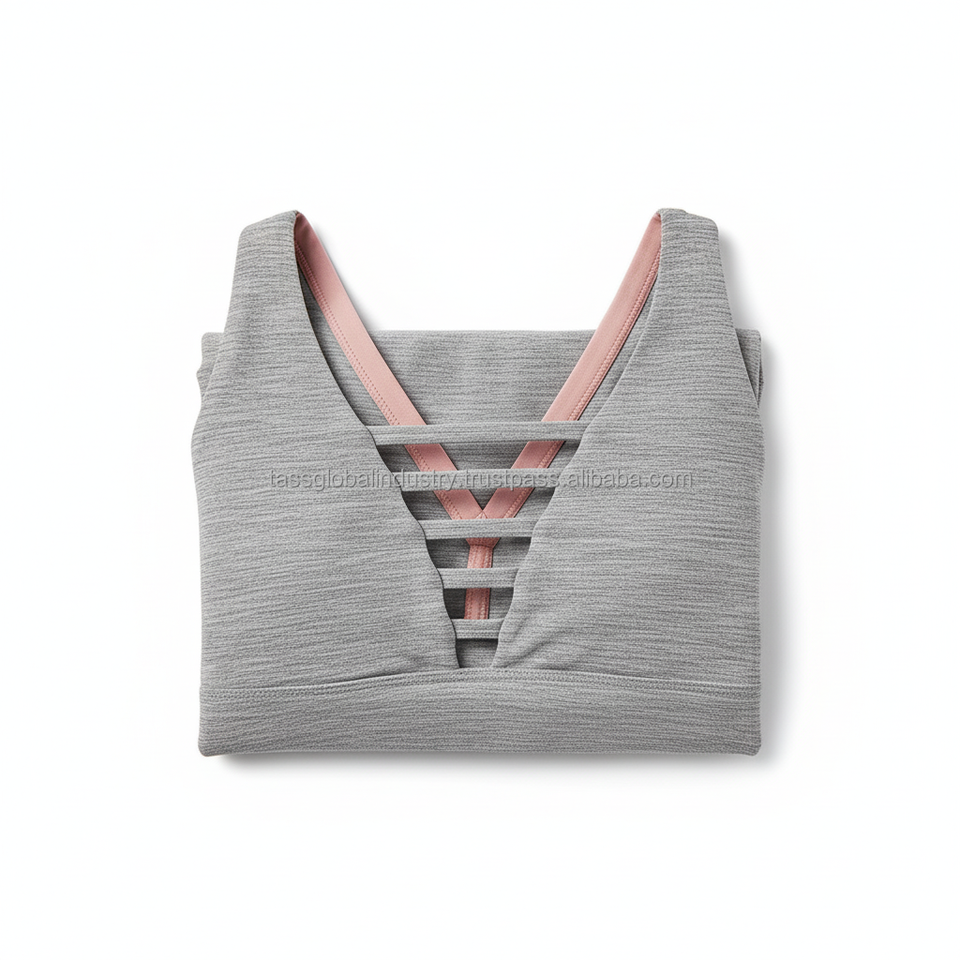 เสื้อชั้นในออกกำลังกายแบบมีสายรัดด้านหน้า สีเทาเฮเธอร์ เสื้อกล้ามโยคะแบบมีฟองน้ำระบายอากาศ เสื้อกีฬาแขนกุดสำหรับผู้หญิง ผ้ามีความยืดหยุ่นสูง เหมาะสำหรับออกกำลังกาย