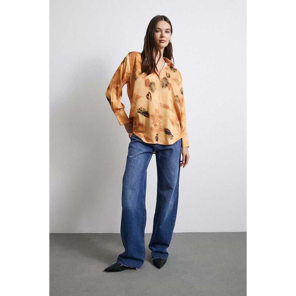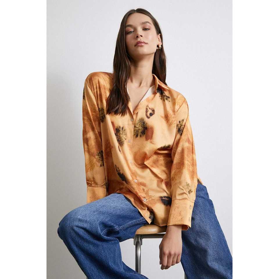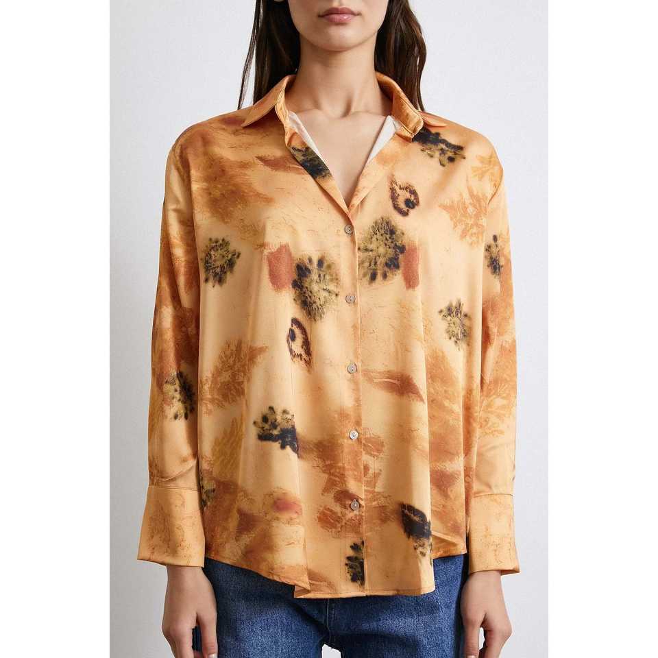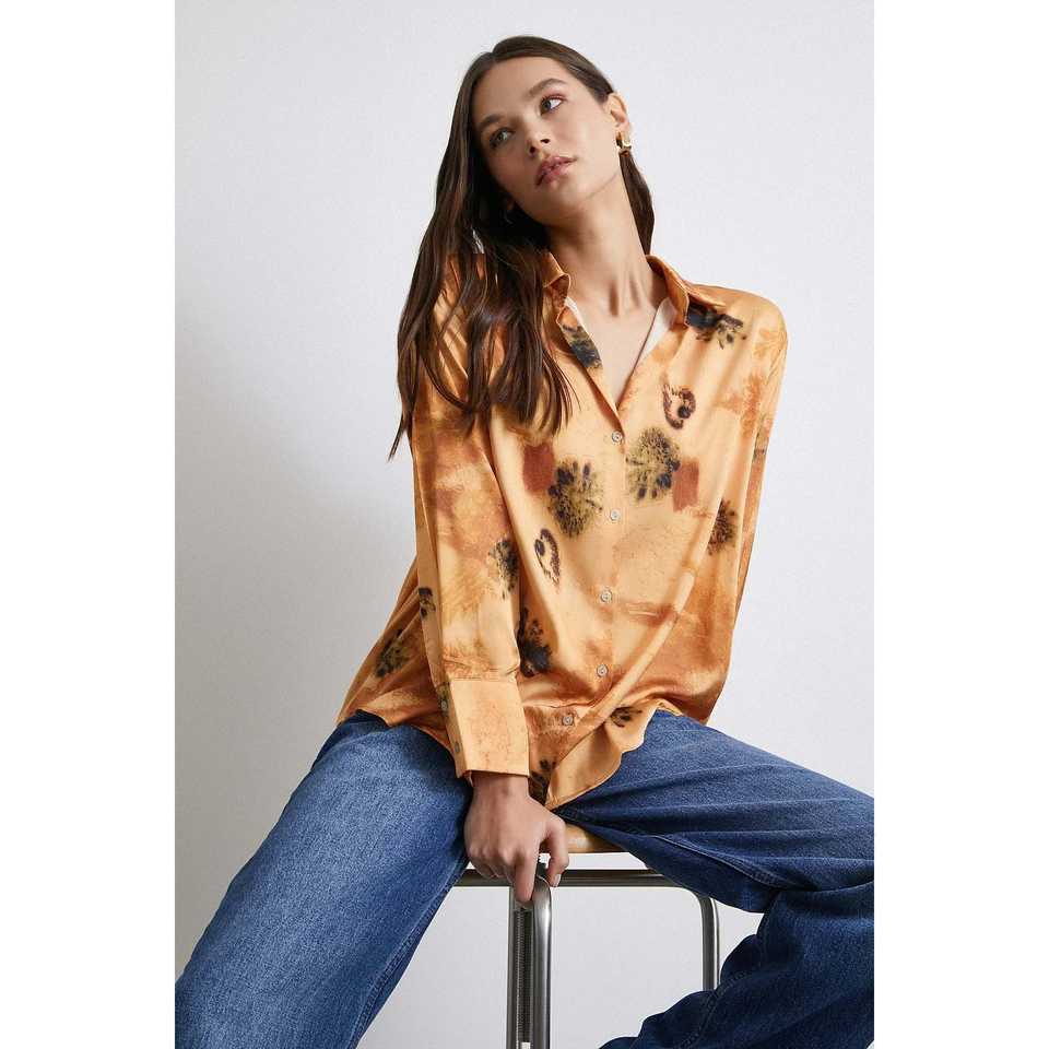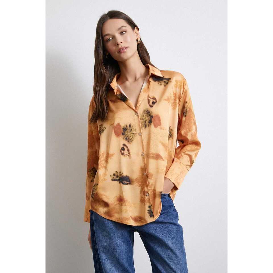 เสื้อเชิ้ตผ้าซาตินพิมพ์ลายดอกไม้สไตล์ลำลองสำหรับผู้หญิง ติดกระดุม ใส่ได้ทุกวัน
