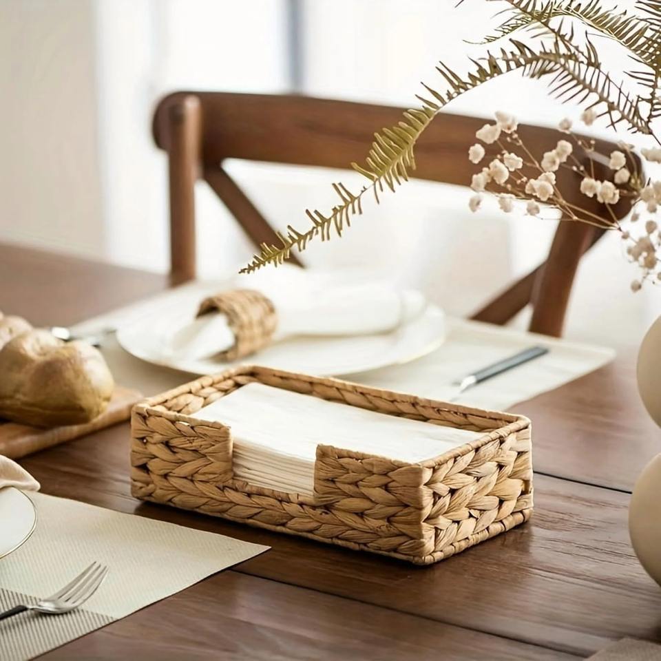 ตะกร้ากระดาษฟางสำหรับใส่กระดาษทิชชู กล่องใส่ทิชชูสานจากหญ้าผักตบชวา