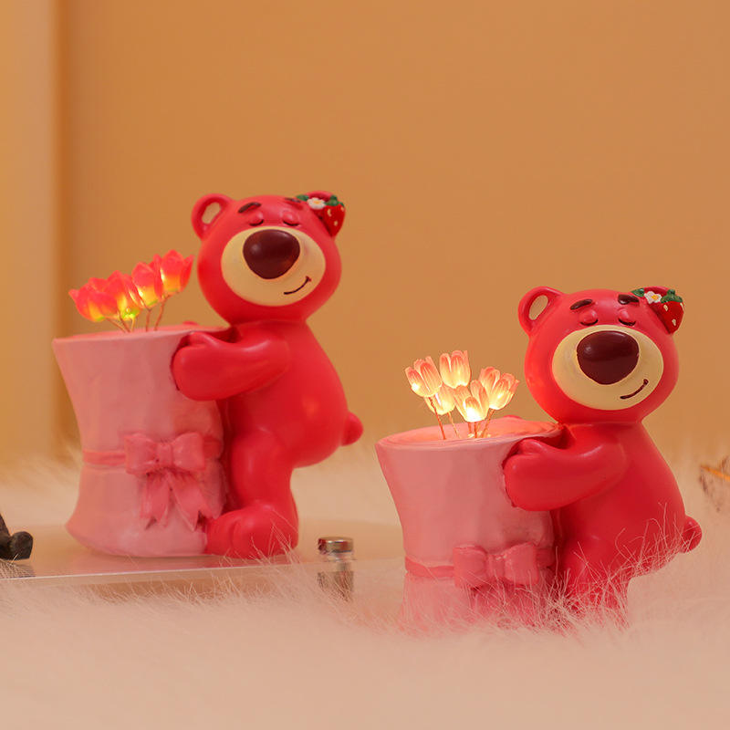 ไฟกลางคืนเรซิ่นรูปหมีสตรอว์เบอร์รี่ กุหลาบ ทิวลิป งานปั้นเรซิ่นอีพ็อกซี่ ของตกแต่งโต๊ะทำงาน ของขวัญวันเกิดสุดสร้างสรรค์สำหรับสาวๆ
