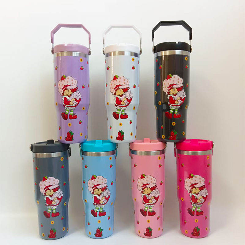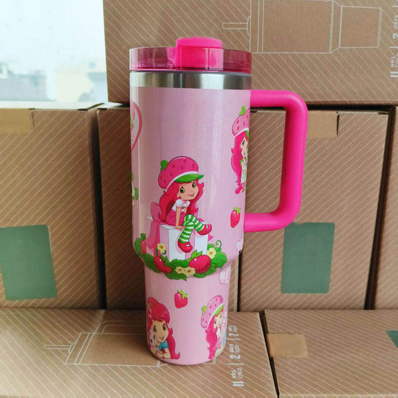 แก้วน้ำสแตนเลสลายการ์ตูนน่ารักสำหรับเด็กผู้หญิง ขนาด 40 ออนซ์ ยี่ห้อ Strawberry Designs พร้อมหูจับและหลอด
