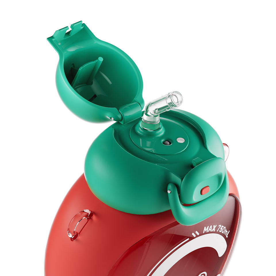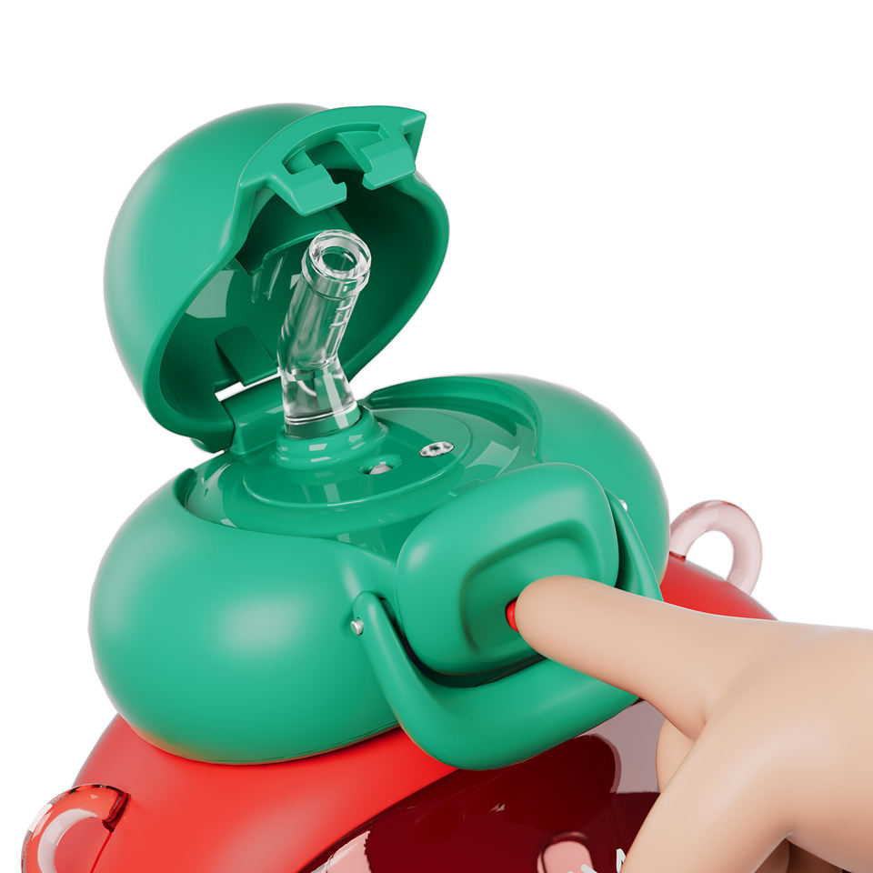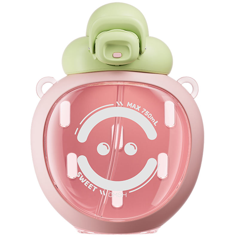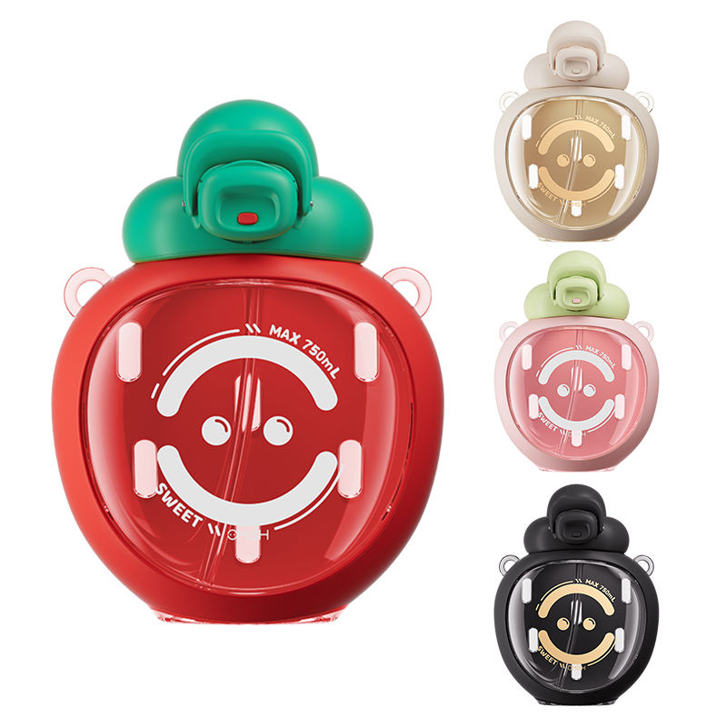 แก้วน้ำพลาสติกพกพาความจุสูงสีสตรอเบอรี่ความจุมากถ้วยน้ำสำหรับนักเรียนหญิงสำหรับดื่มกลางแจ้ง