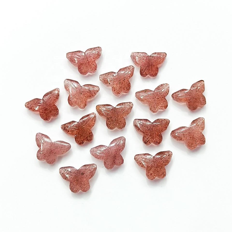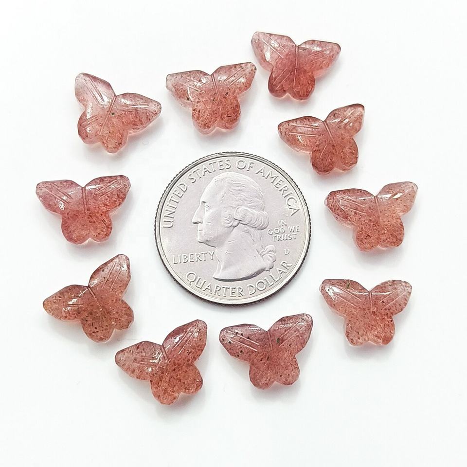 ลูกปัดหินควอตซ์สตรอว์เบอร์รี่รูปผีเสื้อ ลูกปัดหินควอตซ์สตรอว์เบอร์รี่ธรรมชาติรูปผีเสื้อสำหรับทำเครื่องประดับ ราคาขายส่ง