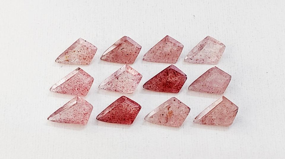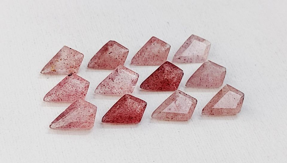 ควอตซ์สตรอว์เบอร์รีทรงว่าวเจียระไน ขนาด 11*7 มม. พลอยธรรมชาติ 100% สำหรับทำเครื่องประดับ ราคาขายส่ง