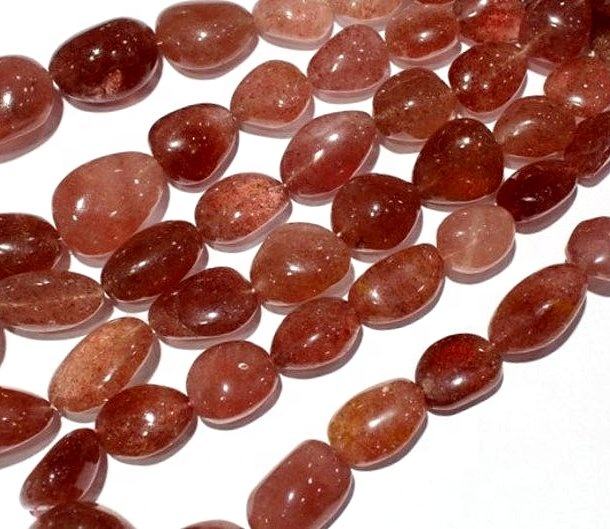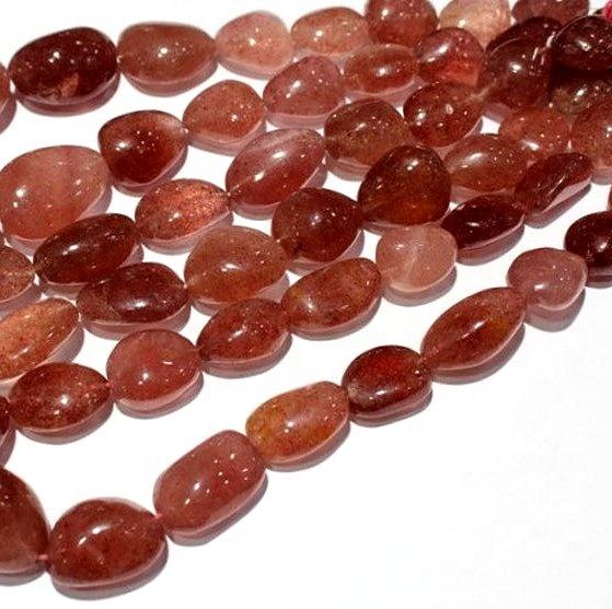 ลูกปัดควอตซ์สตรอว์เบอร์รีทรงกลมขัดเงาสำหรับทำเครื่องประดับ ราคาขายส่งต่อเส้น คุณภาพธรรมชาติ