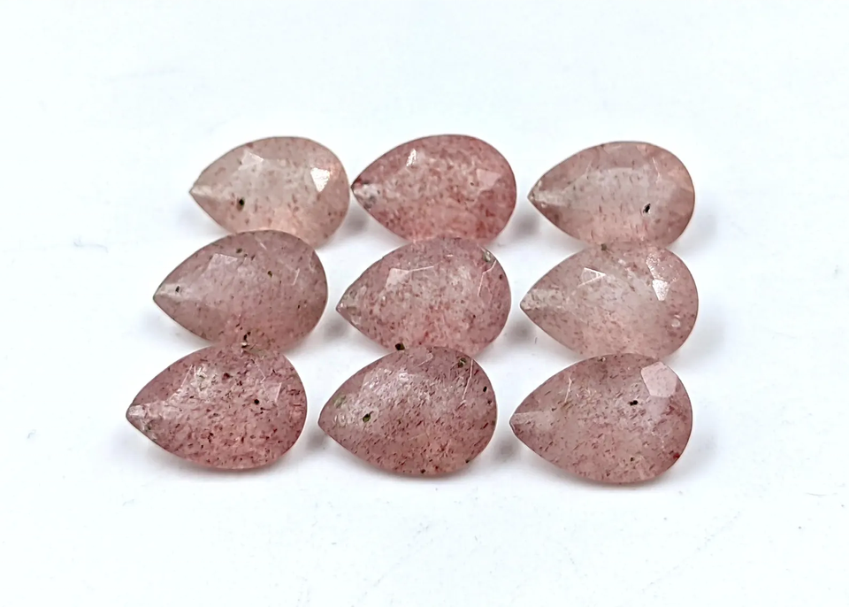 ควอตซ์สตรอว์เบอร์รีธรรมชาติ ทรงลูกแพร์ เจียระไนเหลี่ยมเพชร