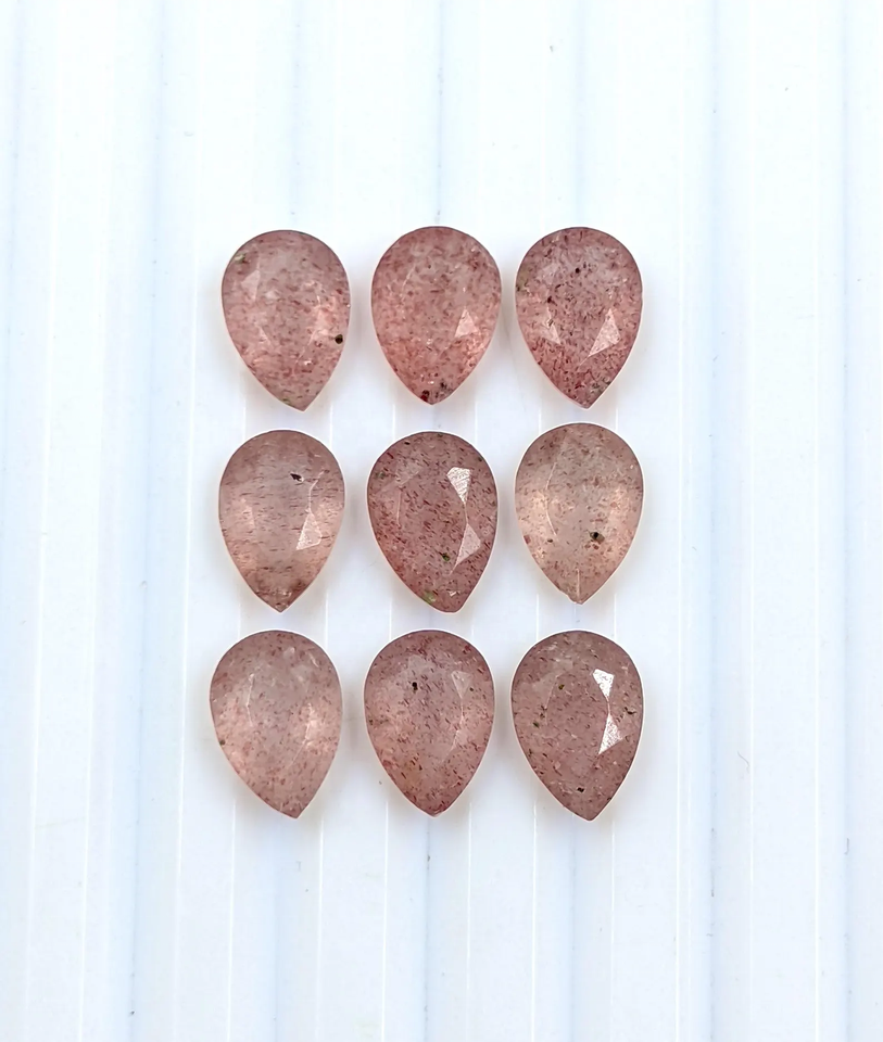 ควอตซ์สตรอว์เบอร์รีสีแดงทรงลูกแพร์เจียระไน ขนาด 8*6 มม. 10*7 มม. พลอยธรรมชาติ 100% สำหรับทำเครื่องประดับ ราคาขายส่ง
