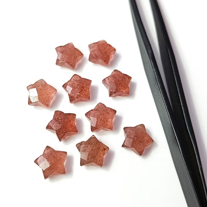 สร้อยข้อมือควอตซ์แกะสลักด้วยมือรูปดาวรูปสตรอเบอร์รี่สำหรับทำเครื่องประดับอัญมณีควอตซ์เหลี่ยม10มม. ขายส่งจำนวนมาก