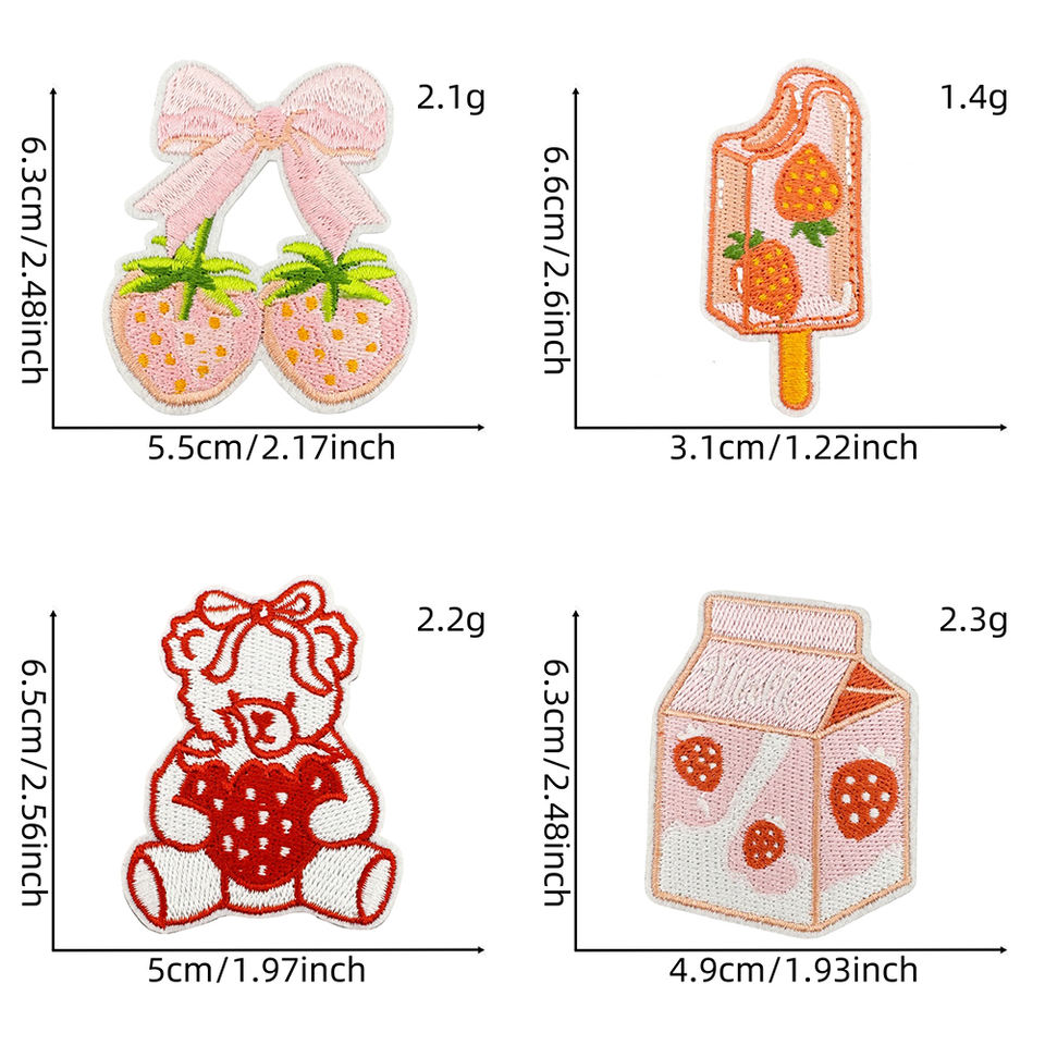 แพทช์ผ้าแคนวาสปักลายหัวใจและดอกไม้ธีมสตรอว์เบอร์รีรักษ์โลก สำหรับติดเสื้อผ้า หมวก และเครื่องประดับ