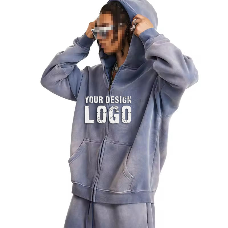 Street Casual Gradient Color Loose Zip Mens Cardigan Hoodies Coat Wholesale OEM Drop Shoulder Zipped Oversized Men's Hoodies