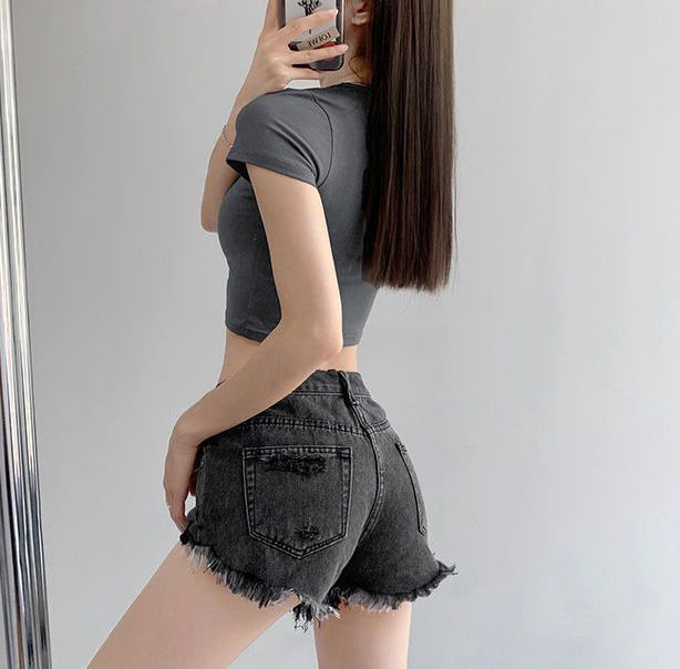 กางเกงขาสั้นเอวสูงทรงเอแบบวินเทจสำหรับผู้หญิงกางเกงเอวสูงทรงปกติดีไซน์เป็นรูระบายอากาศได้ดีฤดูร้อน
