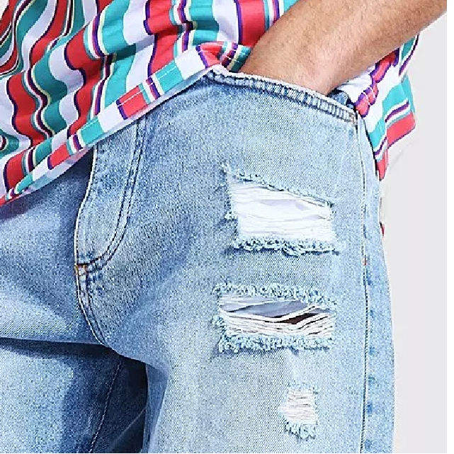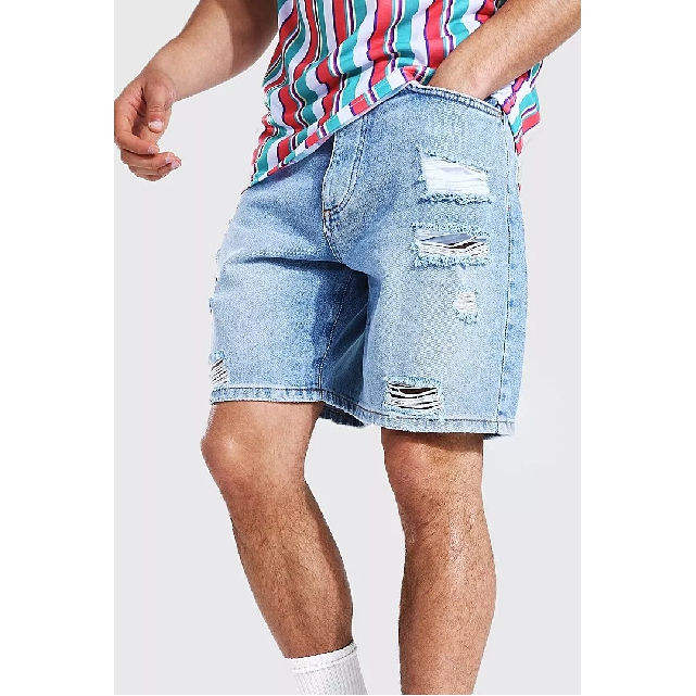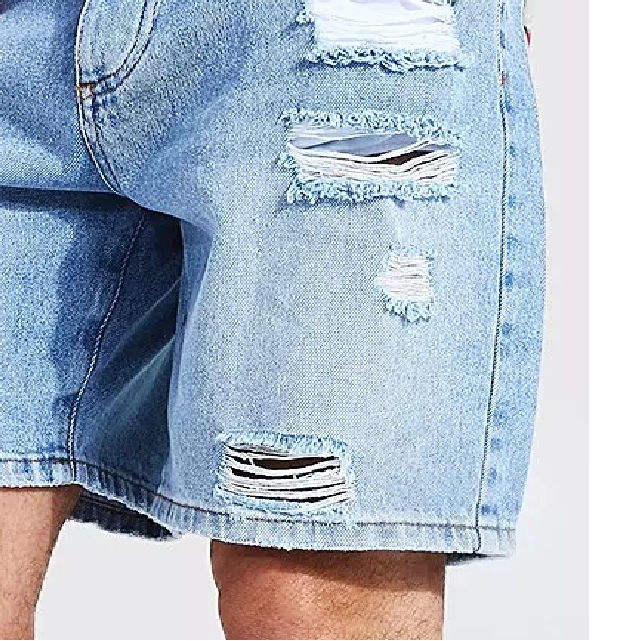 กางเกงยีนส์ขาสั้นผู้ชายสไตล์สตรีทแฟชั่น กางเกงขาสั้นทรงหลวมสบายๆ ระบายอากาศได้ดี บริการ OEM รับผลิตตามแบบที่ต้องการ