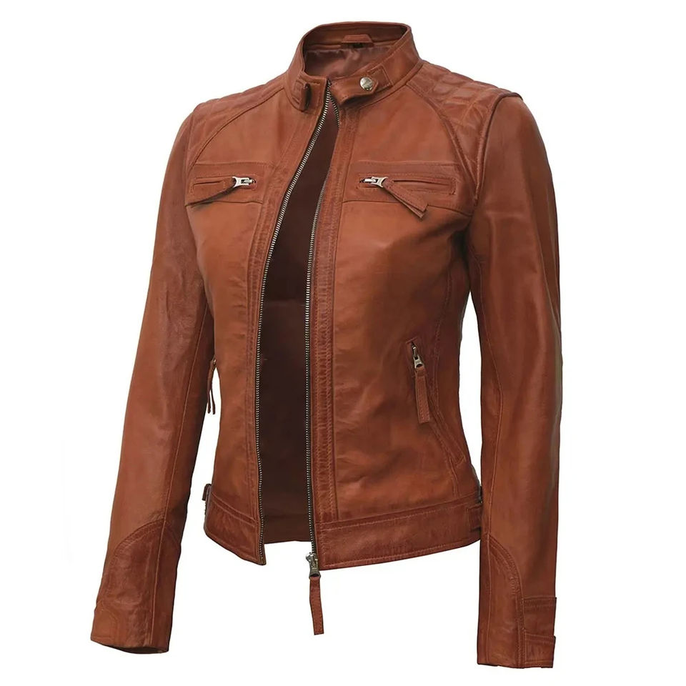 เสื้อแจ็คเก็ตหนังคุณภาพสูงสำหรับผู้หญิง