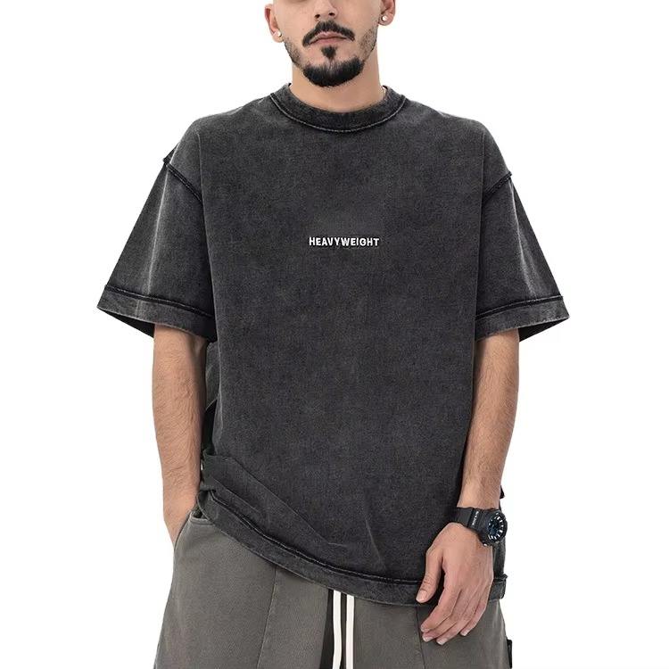 Street Oversized Blank Vintage T-Shirts 270 Gsm Heavy Weight 100% Cotton T Shirt Embroidered Contrast Stitch Tshirt