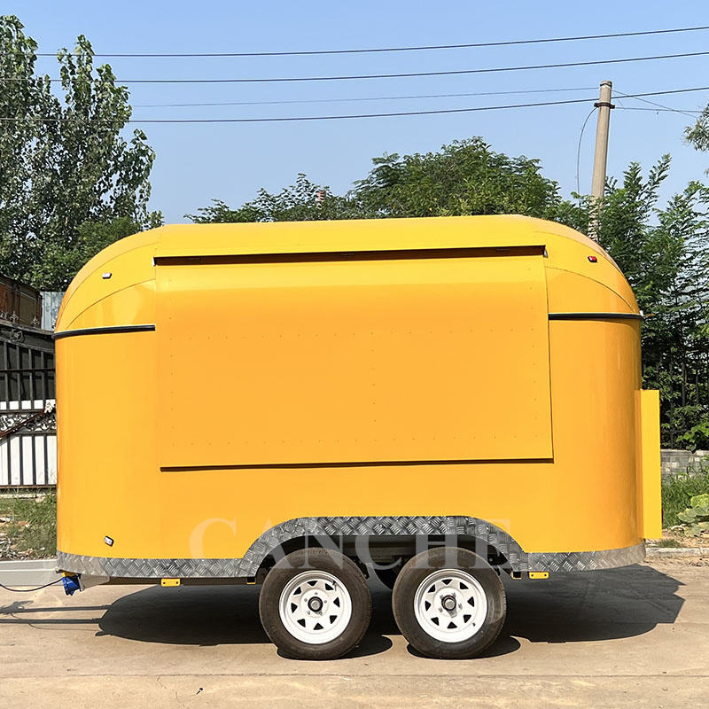 รถเทรลเลอร์น้ำแข็งมาตรฐานสำหรับขายปลีกขนมขบเคี้ยวอาหารข้างทางรถเข็นขายผลิตภัณฑ์จากนมขนมฮอทด็อกสำหรับร้านค้าอาหาร