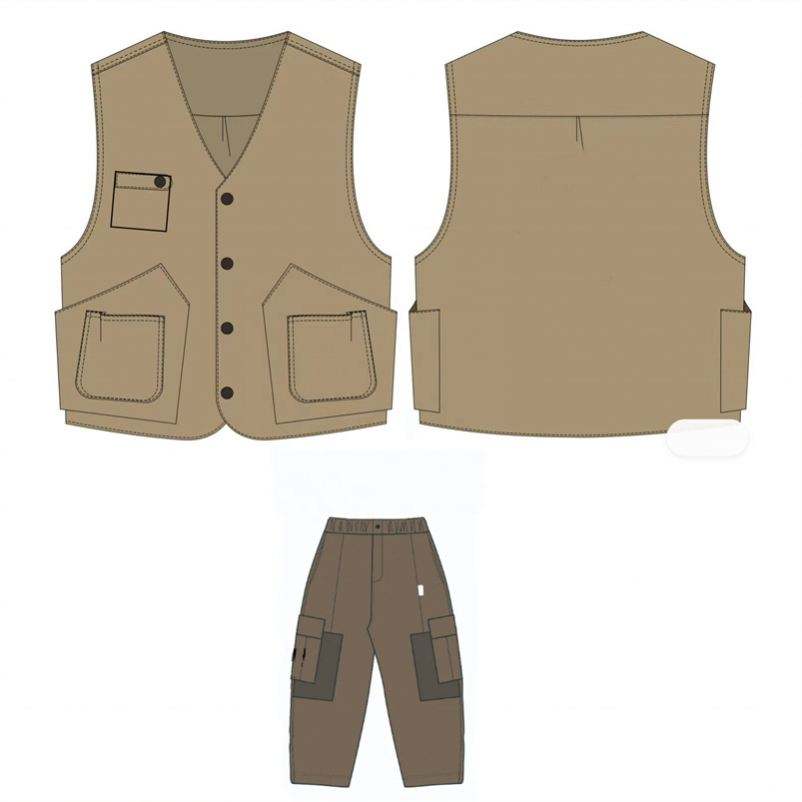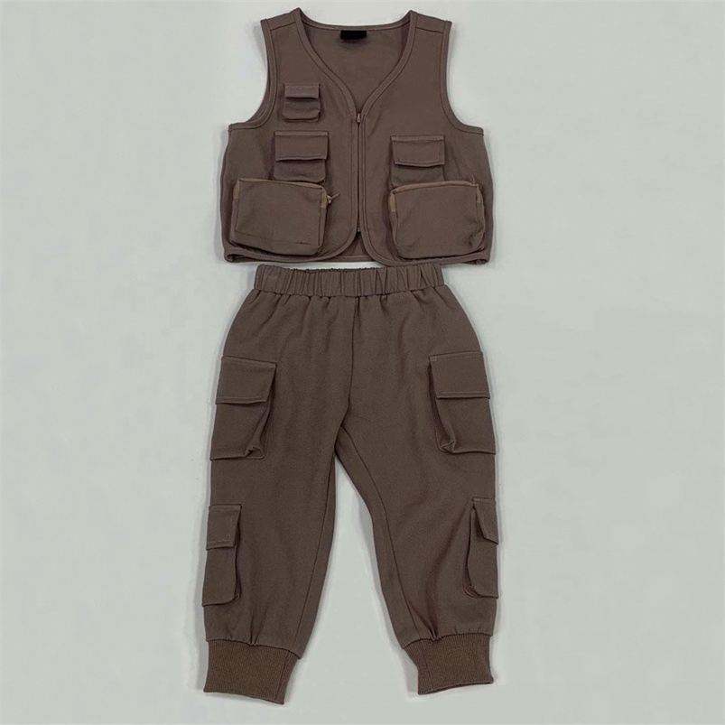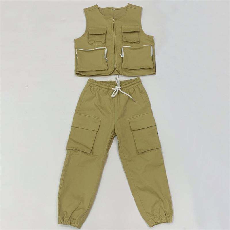 ชุดเสื้อกั๊กคาร์โก้และกางเกงคาร์โก้หลายกระเป๋ามีซิปแบรนด์แฟชั่นสไตล์สตรีท