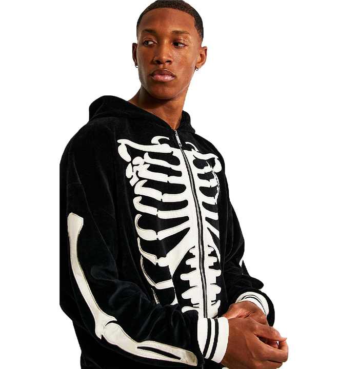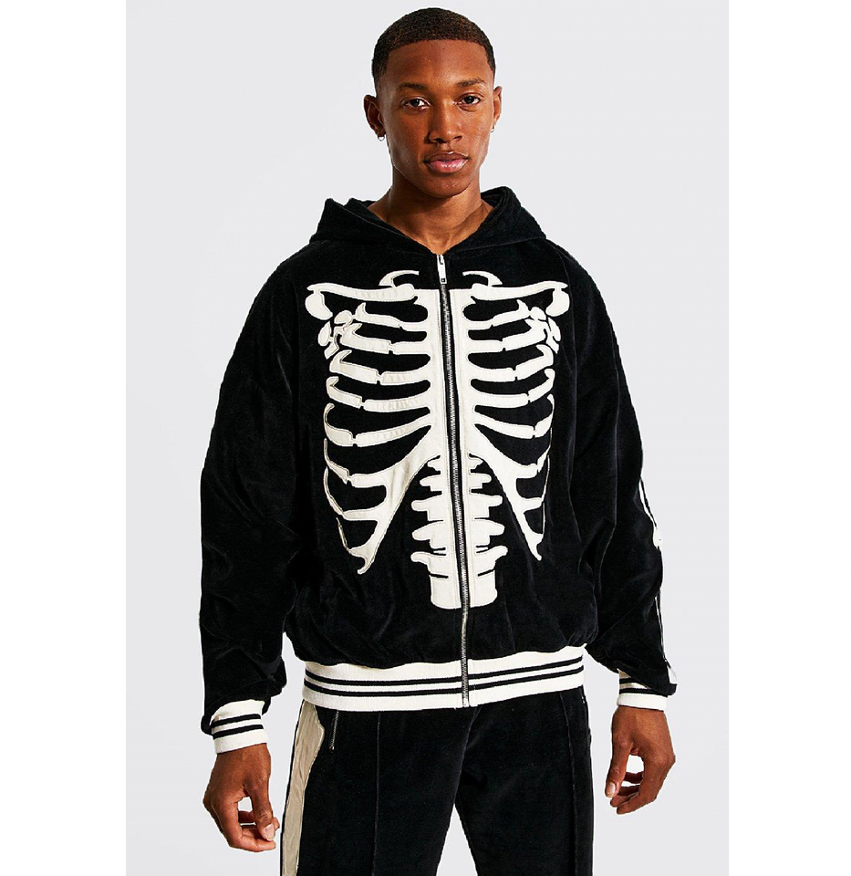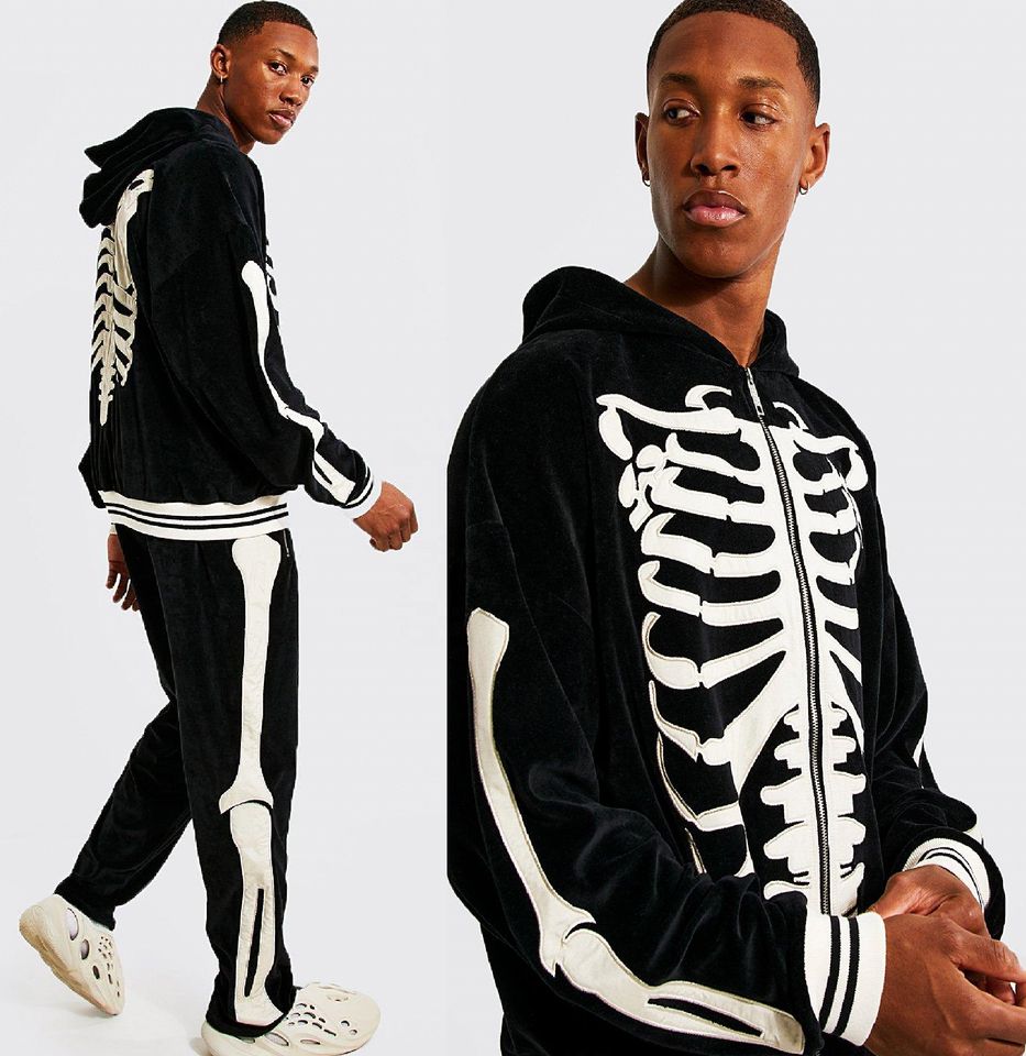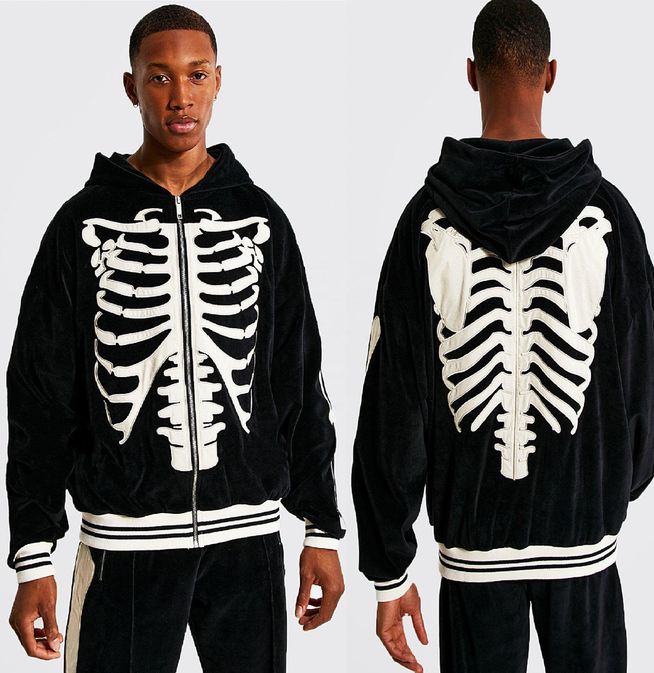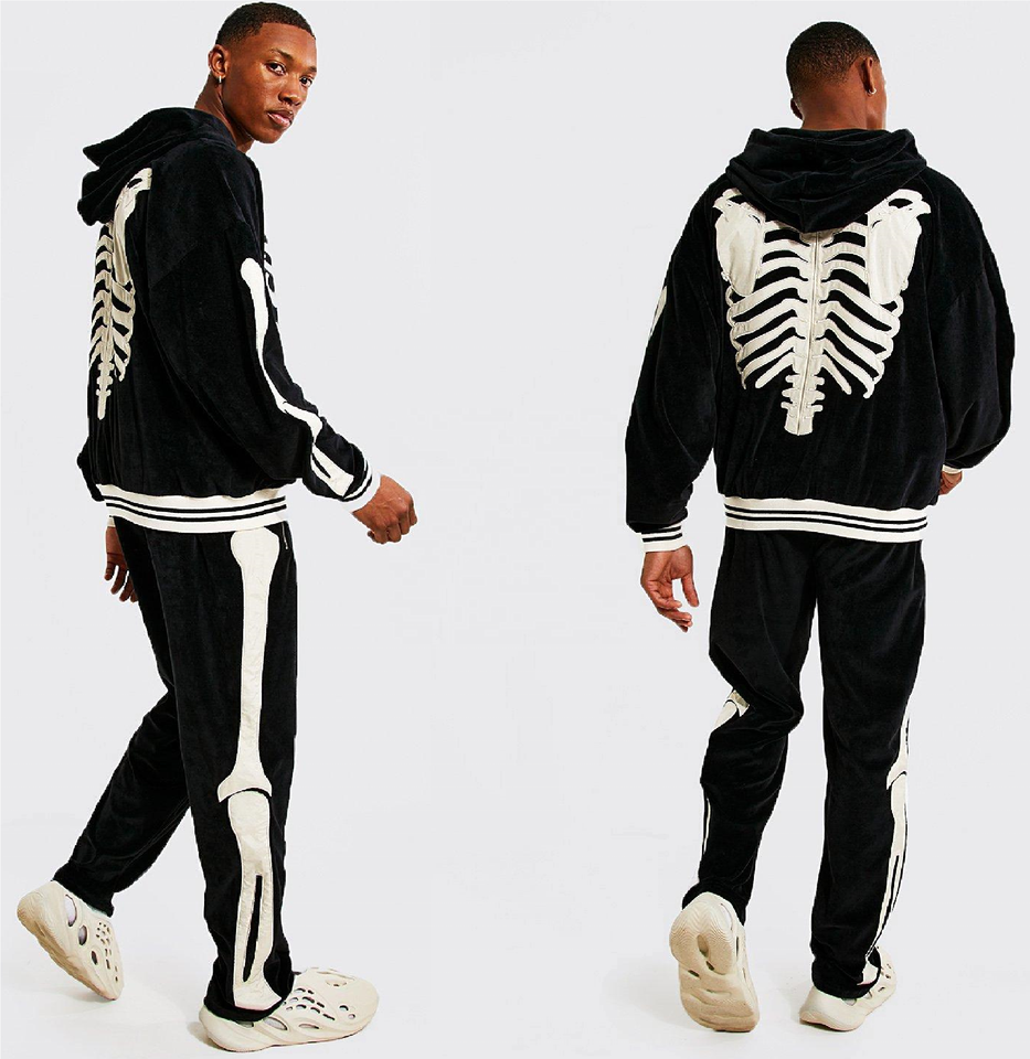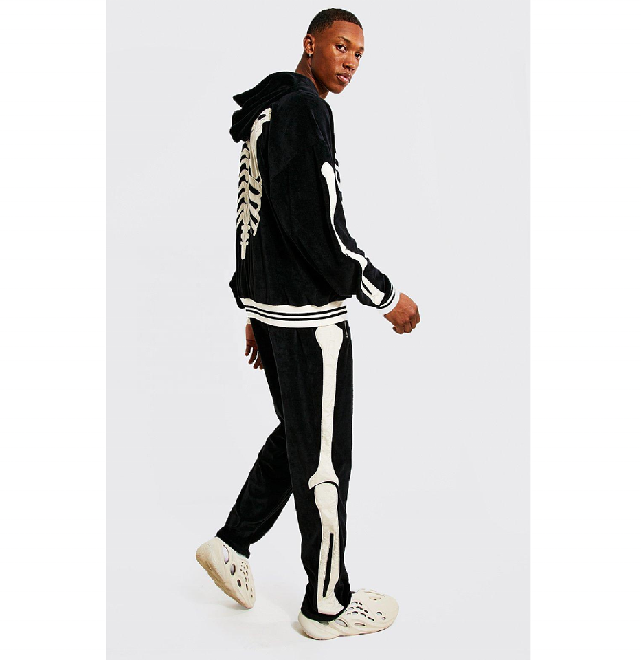 ชุดวอร์มแบบมีฮู้ดสำหรับผู้ชาย,เสื้อผ้าแฟชั่นสตรีท Velour Zip Through มีซิปด้านหน้ากำมะหยี่ปักลาย