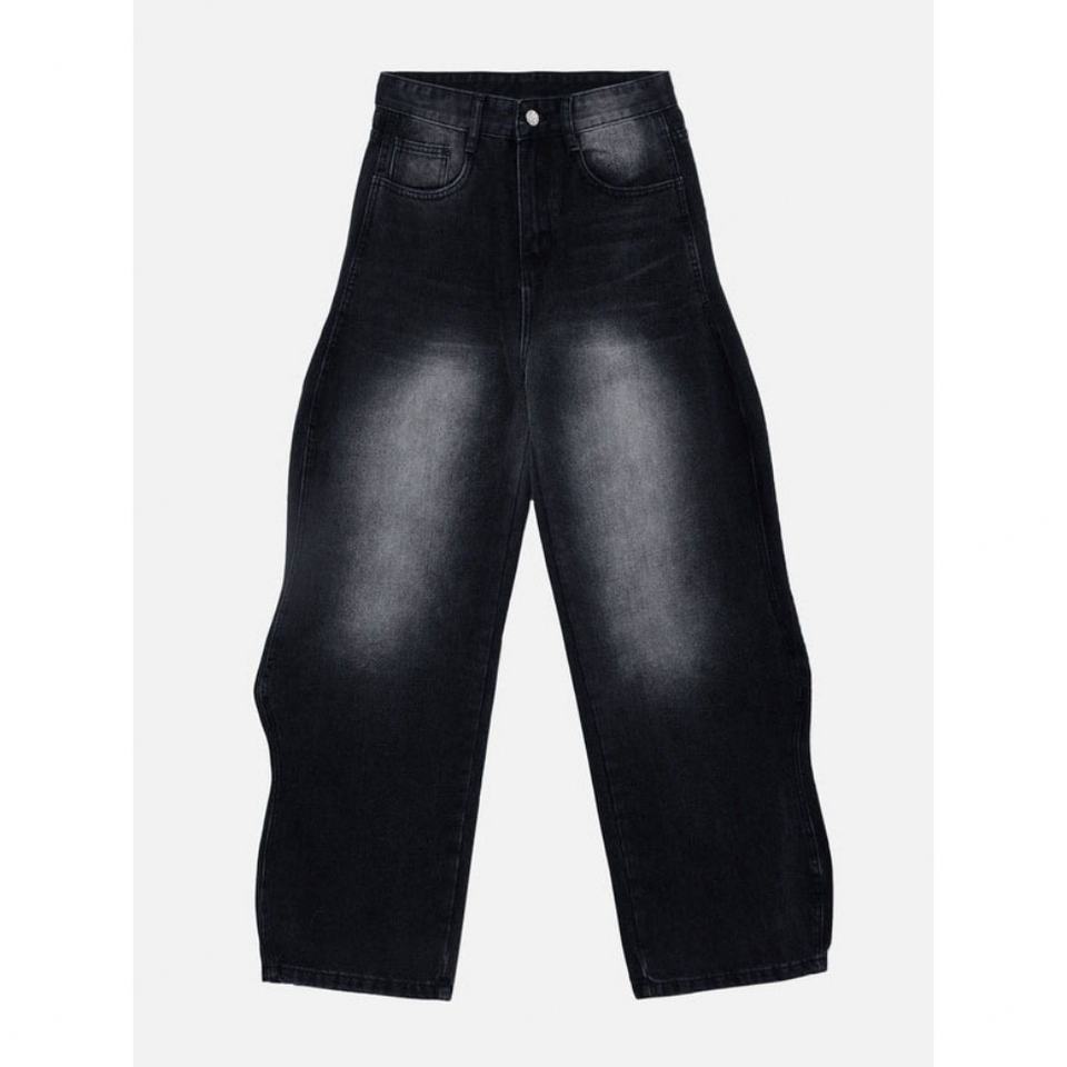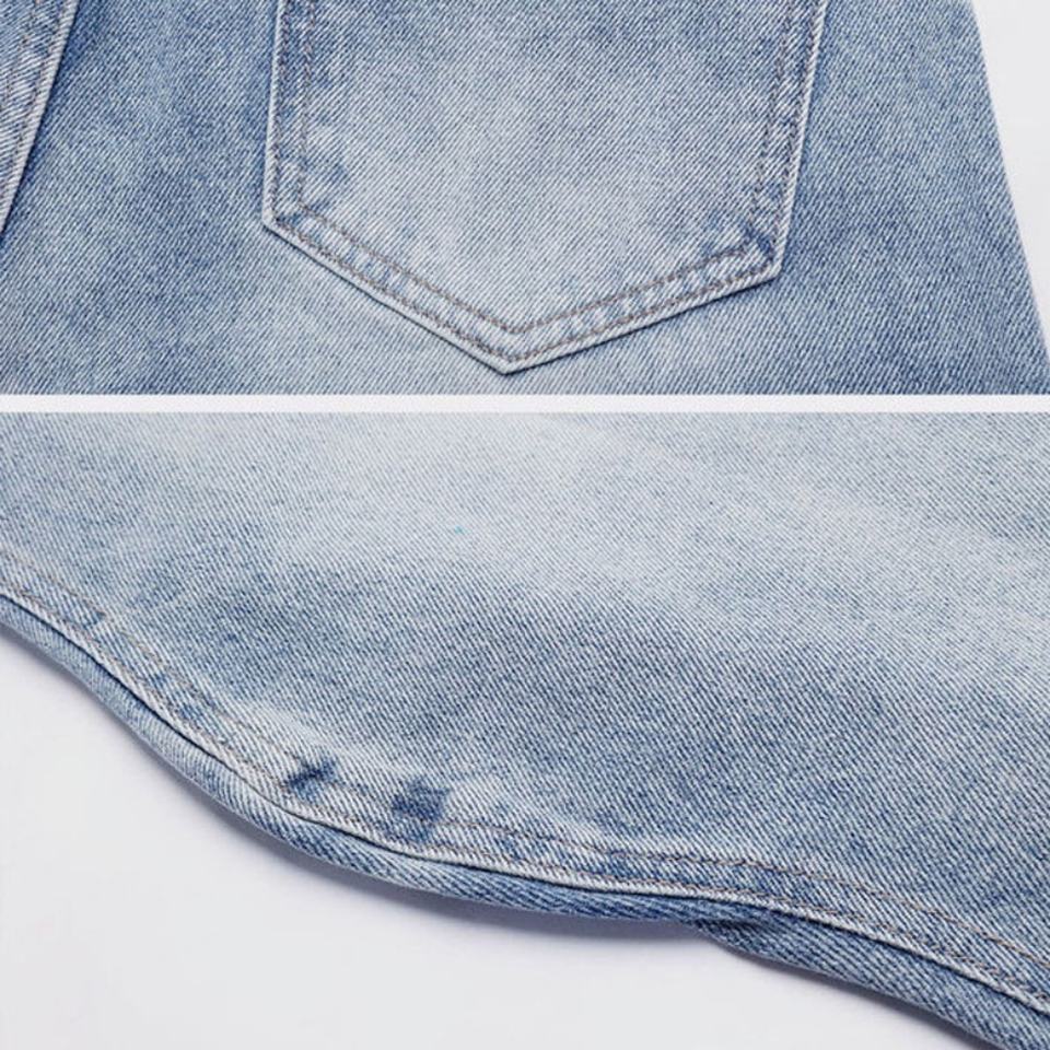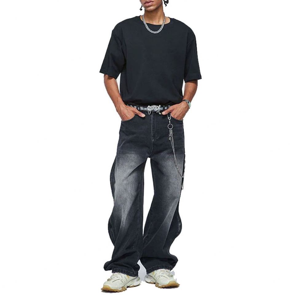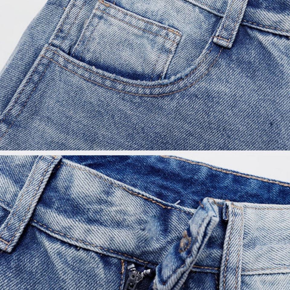 กางเกงยีนส์ทรงหลวมสไตล์สตรีท ดีไซน์ขอบไม่เรียบ แต่งขอบหยัก ลุคซักฟอก สำหรับผู้ชายและผู้หญิง