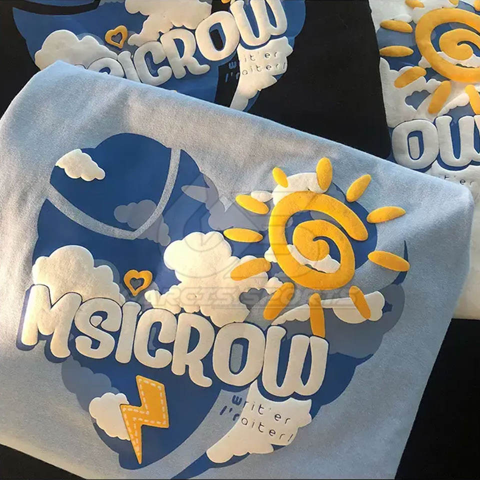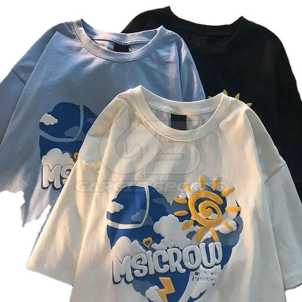 เสื้อยืดพิมพ์ลายพัฟฟ์สไตล์สตรีทสำหรับผู้ชายเสื้อยืดพิมพ์ลายแบบโอเวอร์ไซส์สไตล์วินเทจ