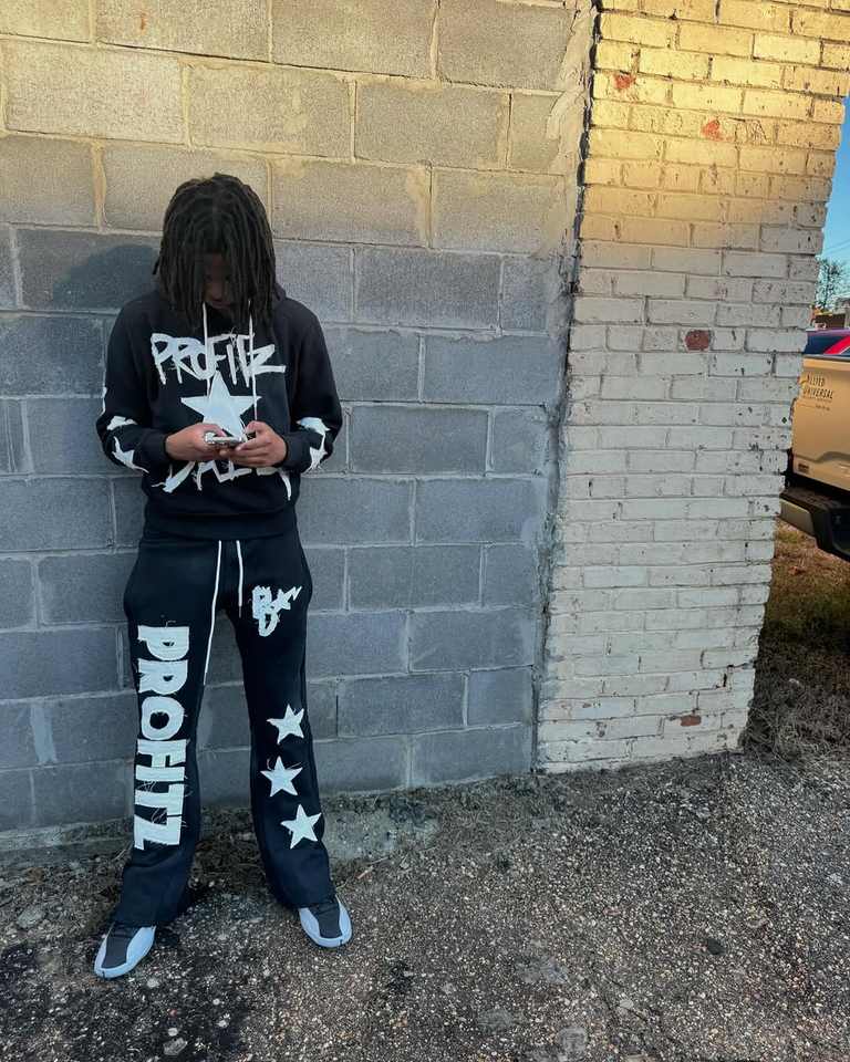 ชุดวอร์มเข้ารูปสไตล์สตรีทสูทผ้าฝ้ายโอเวอร์ไซซ์แนววินเทจชุดวอร์มเข้ารูปกางเกงขากว้างและเซ็มีฮู้ด