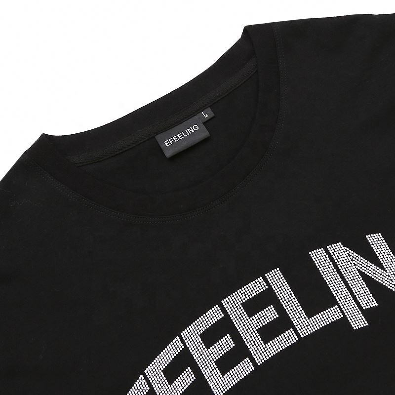 เสื้อยืดสตรีทแวร์ 300 GSM ผ้าฝ้าย 100% สีดำล้วน ขายส่ง ลายตัวอักษรประดับเพชร ทรงปกติ ใส่ได้ทั้งชายและหญิง
