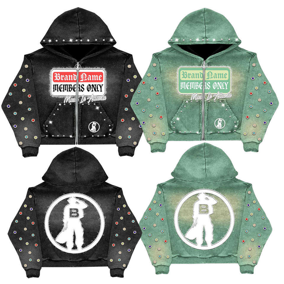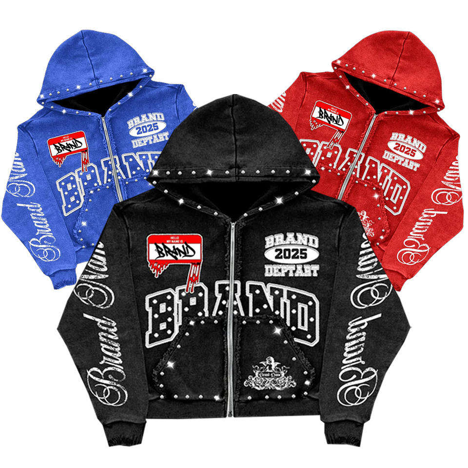เสื้อสตรีทแวร์ผู้ชายไซส์ใหญ่พิเศษ ผลิตจากโพลีเอสเตอร์/คอตตอนรักษ์โลก พิมพ์ลายเต็มตัว ปักลาย ประดับคริสตัล ทรงสี่เหลี่ยม ซิปครึ่งตัว