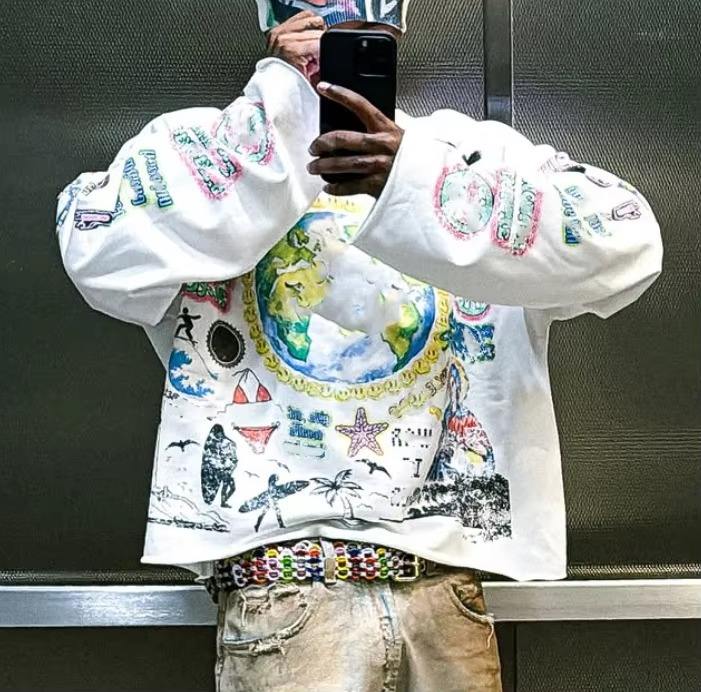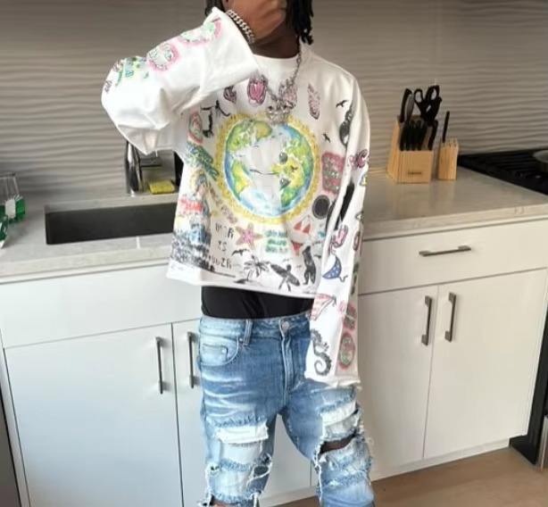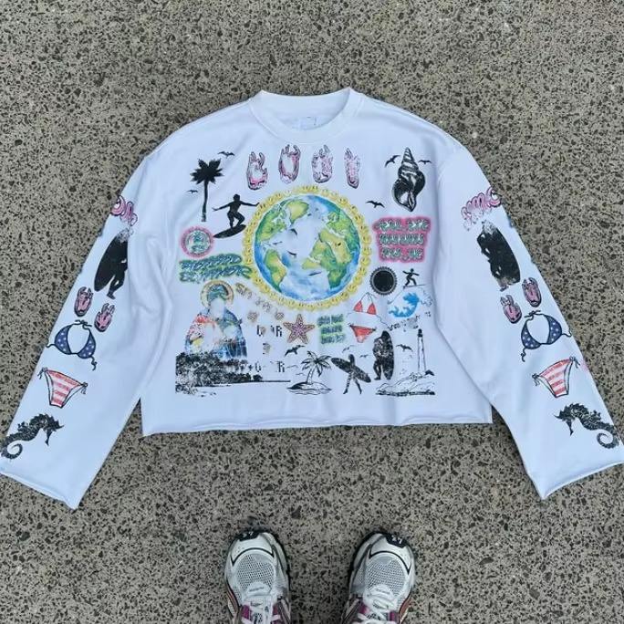 เสื้อยืดสตรีทแวร์พิมพ์ลายตามสั่ง ผ้าฝ้าย 100% คอกลม ทรงครอป บ็อกซี่ แขนยาว สำหรับผู้ชาย