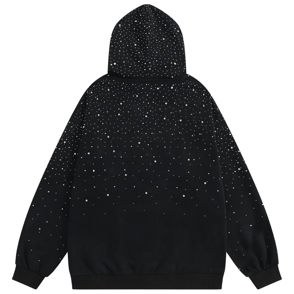 เสื้อฮู้ดดี้ครอปผ้าฝรั่งเศสเทอร์รี่คอตตอนพิมพ์ลายสกรีนสตรีทแวร์แบบยูนิเซ็กซ์ ขอบตัดดิบ ล้างสีแบบสโตนวอช ประดับคริสตัล สำหรับผู้ชาย