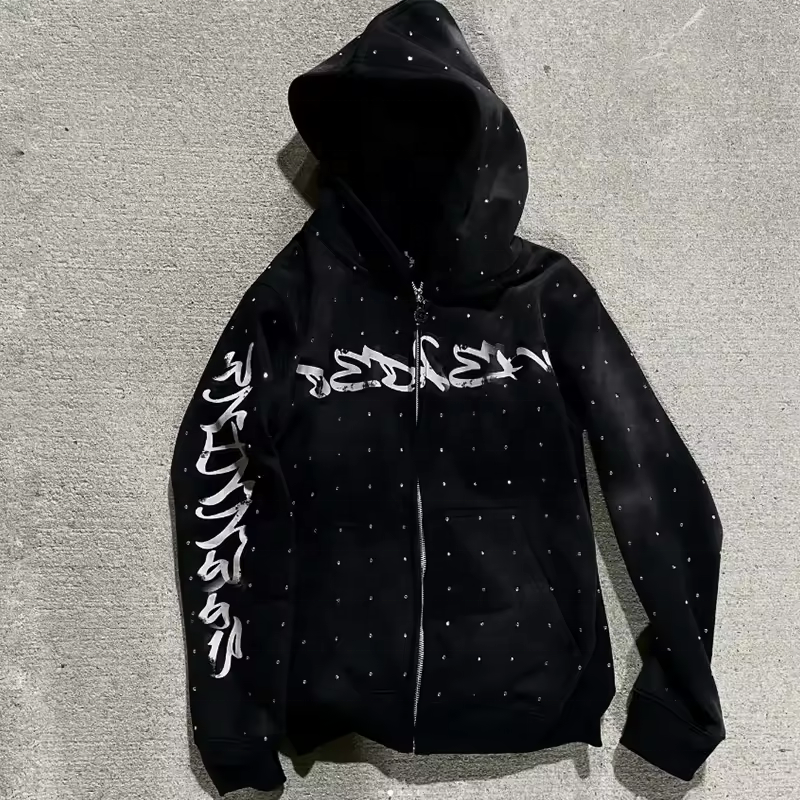 ชุดวอร์มแนวสตรีทแบบมีซิปรูดสำหรับผู้ชายกางเกงวอร์มผ้าฮิปฮอปผ้าฝ้าย100% พิมพ์ลายสกรีนลายสำหรับผู้ชายเสื้อผ้าแนวสตรีทเฮฟวี่เวท