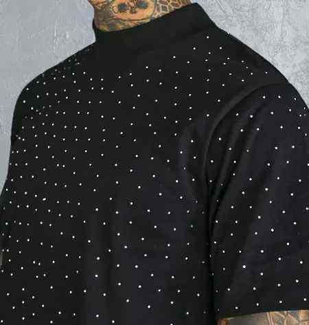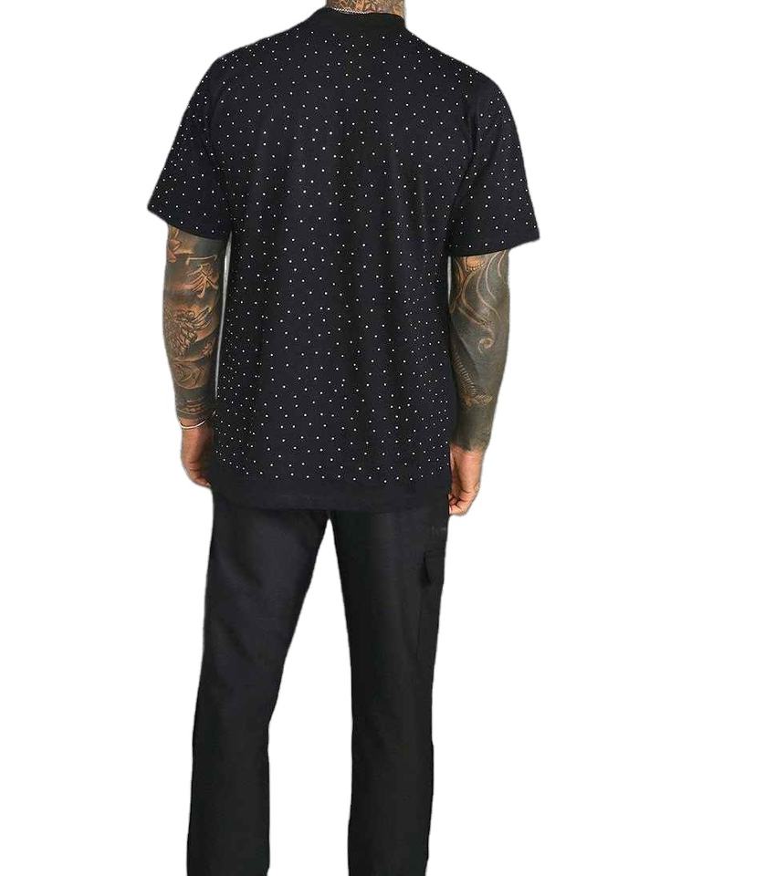 เสื้อยืดสตรีทแวร์ คอกลม วินเทจ ประดับเพชรเทียม สกรีนโลโก้ได้ เสื้อผ้าผู้ชาย ราคาขายส่ง เสื้อยืดผู้ชายประดับเพชรเทียม