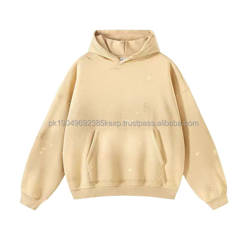 เสื้อมีฮู้ดพิมพ์ลายกราฟิก DTG เสื้อมีฮู้ดสำหรับผู้ชายแนวสตรีทเสื้อมีฮู้ดระบายน้ำหมึกจางๆ