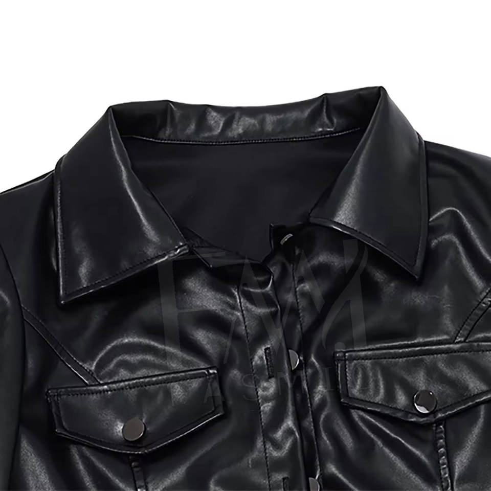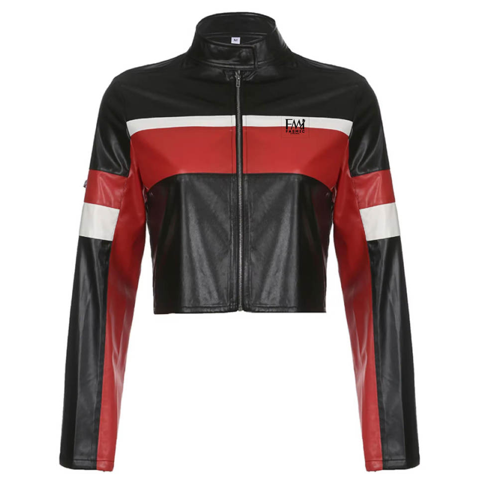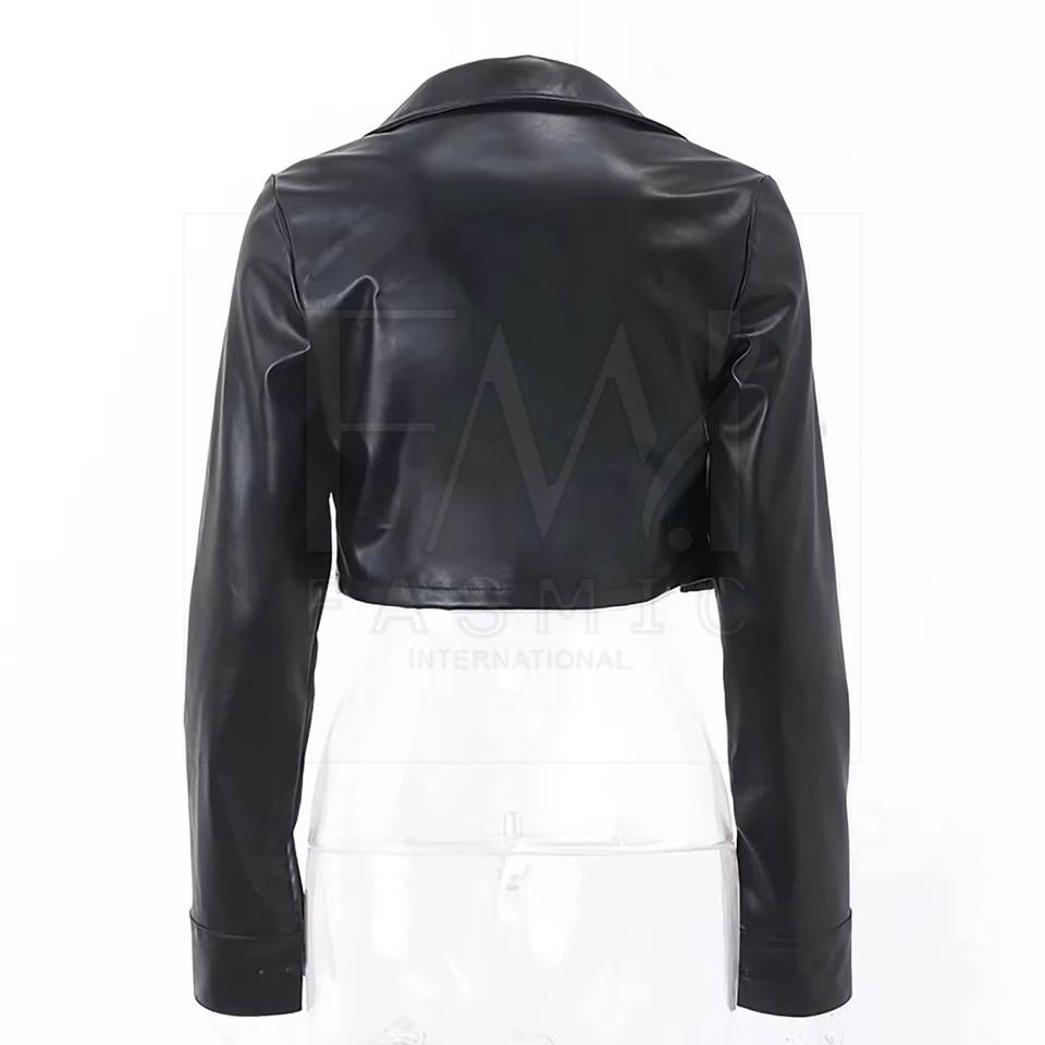 ชื่อผลิตภัณฑ์:แจ็คเก็ตหนังครอปผู้หญิง