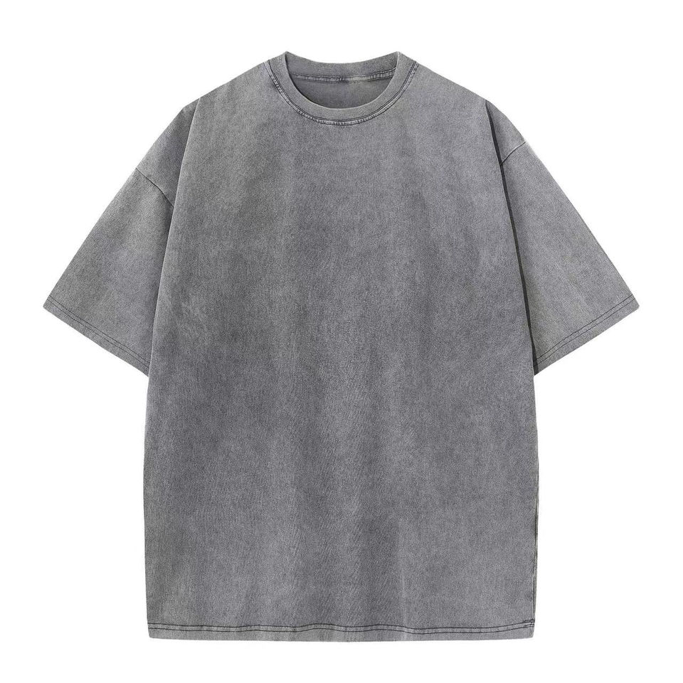 เสื้อยืดสตรีทแวร์ฮิปฮอปผ้าคอตตอน/ใยไผ่เนื้อหนานุ่มทรงหลวมแบบเรียบๆ สั่งทำได้ เสื้อยืดวินเทจผู้ชายทรงโอเวอร์ไซส์รักษ์โลก