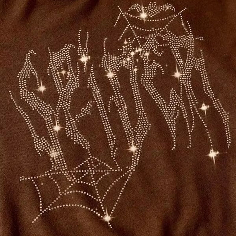 เสื้อฮู้ดดี้แขนยาวสไตล์สตรีทแวร์ พรีเมียม ประดับเพชร โลโก้สั่งทำ ผ้าคอตตอนผสม ลุควินเทจ เสื้อฮู้ดดี้ประดับเพชร สั่งทำได้