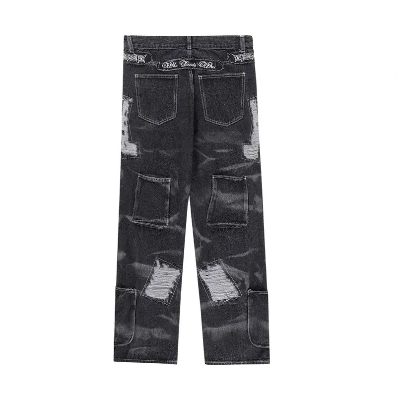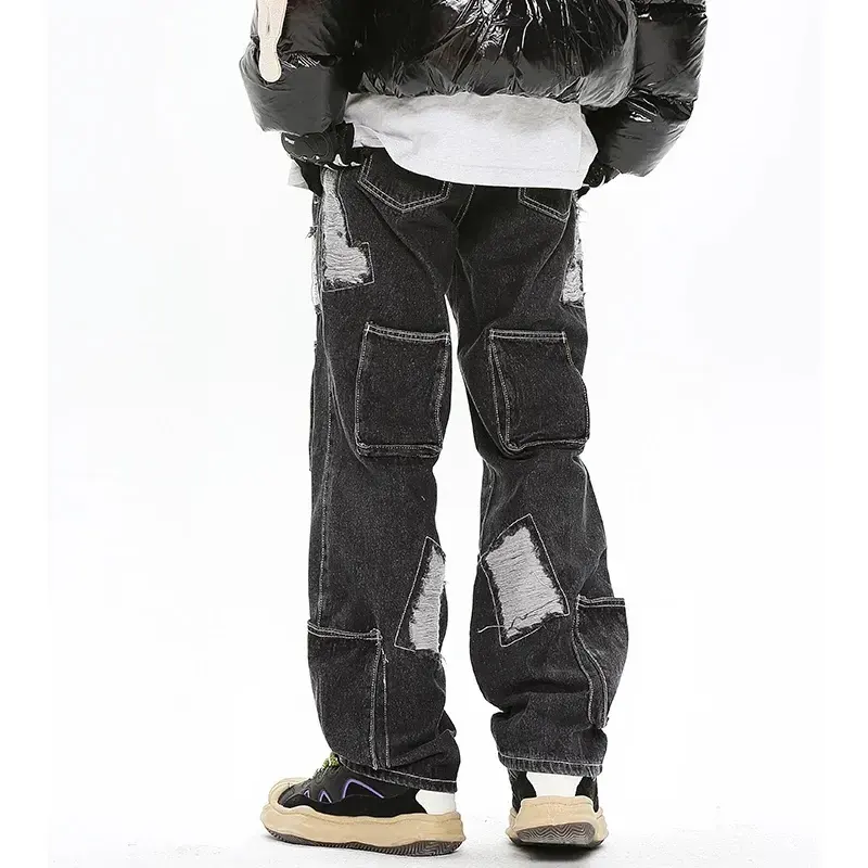 Streetlux กางเกงยีนส์ขายาวทรงหลวมสำหรับผู้ชายดีไซน์ผ้าขี้ริ้วแนวสตรีทแบบอเมริกันออกแบบได้ตามต้องการ